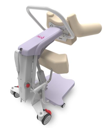 Mobility support robot - Hug L1 From bed to wheelchair, or wheelchair to toilet seat; this in-home-use support robot assists when needing to transfer to a sitting position or in situations where standing for a period of time is required, such as when getting dressed.