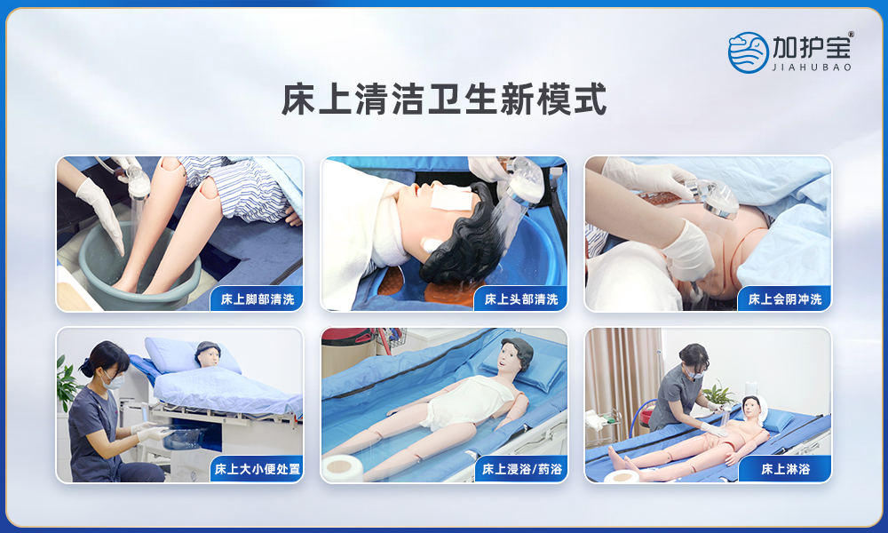 Intelligent rehabilitation nursing bed, designed for long-term bed-ridden people. The original core technology and innovative double-layer bed structure can make it easy to take a shower, bathe, wash hair, foot and perineum, dispose urine and stool, change diaper and simplify daily cleaning and sanitation on bed. The nursing bed has various functions of bed frame lifting, automatic turning, simulating sitting up under the bed, Trendelenburg, Reverse Trendelenburg, etc., users can personalize its position placement and do rehabilitation exercise as needed, thus the nursing bed can effectively prevent and treat bedside complications such as pressure sores, hypostatic pneumonia and circulatory dysfunction. It is the new daily care for people with disabilities because of its precise efficacy, better effect and lower cost.
