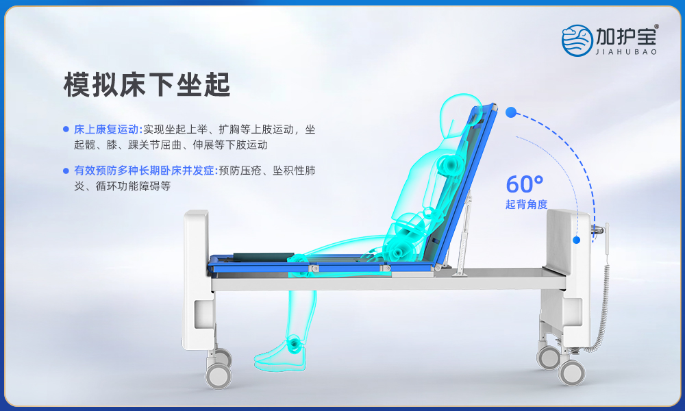 Mobile bed frame trolley, designed for long-term bed-ridden people. Its original core technology and innovative bed structure makes it easy to to take a shower, bathe, wash hair, foot and perineum, dispose urine and stool, change diaper and simplify daily cleaning and sanitation on bed. The nursing bed has various functions of bed frame lifting, simulating sitting up under the bed, etc., users can personalize its position placement and do rehabilitation exercise as needed, thus the nursing bed can effectively prevent and treat bedside complications such as pressure sores, hypostatic pneumonia and circulatory dysfunction. The bed frame can be freely extended, lifted and transformed into a wheelchair and adult walker in seconds to meet the needs of a variety of nursing scenarios; it is the new daily care for people with disabilities because of its precise therapeutic effect, better effect and lower cost.
