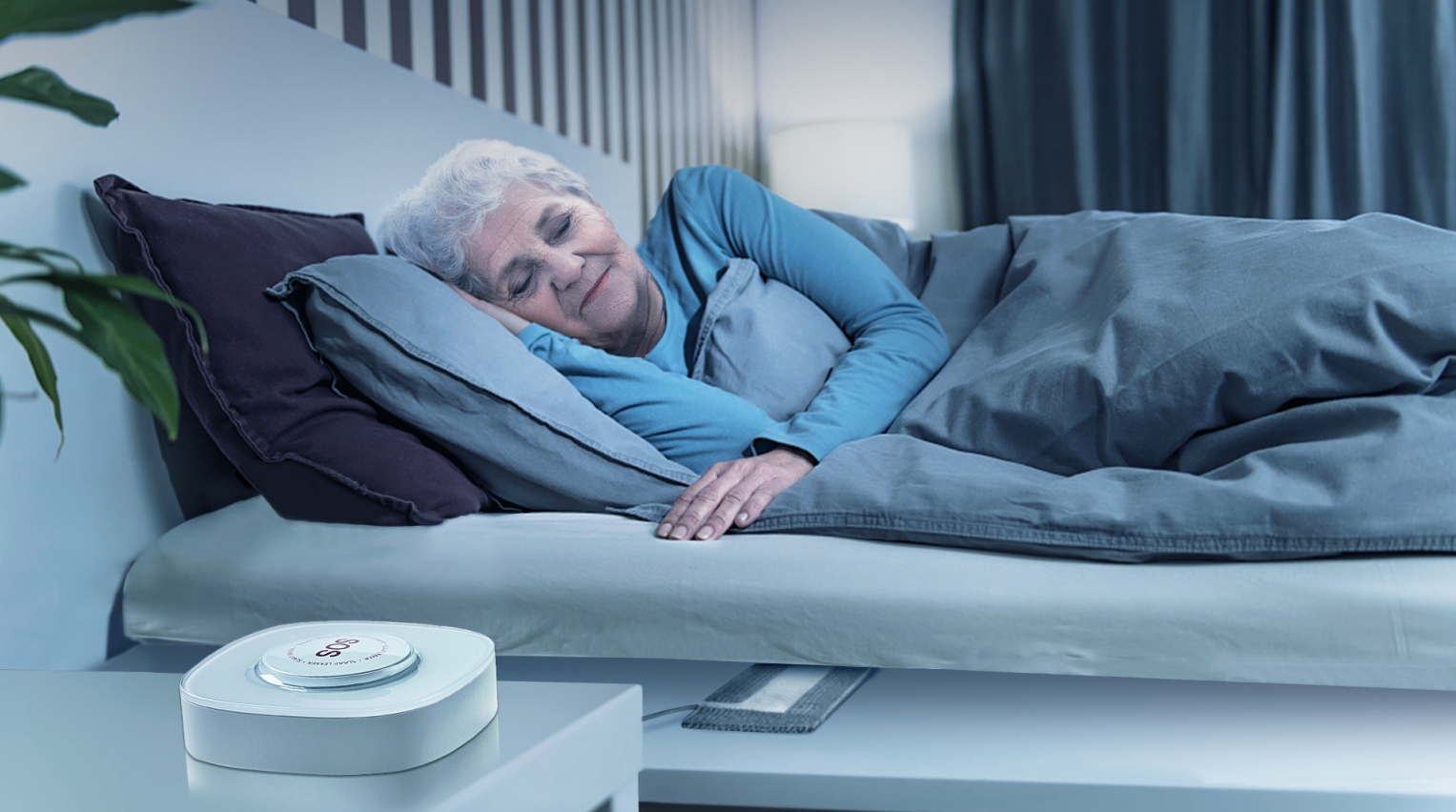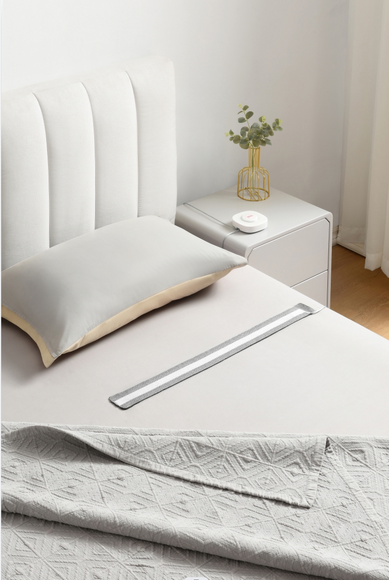 This is a night monitoring device for elderly health management and monitoring. During the specific use process, only the sensor belt needs to be placed under the mattress, and the user's health status can be judged without people noticing, and the monitoring data is presented through the APP, and the user and his family can remotely track the user's health status at any time, which is convenient to find problems and respond in time. The device can not only provide basic heart rate, breathing rate, sleep status and other monitoring, but also provide early disease screening and risk warning, such as cardiovascular and cerebrovascular diseases: atrial fibrillation, atrioventricular block, respiratory diseases: apnea syndrome, etc.