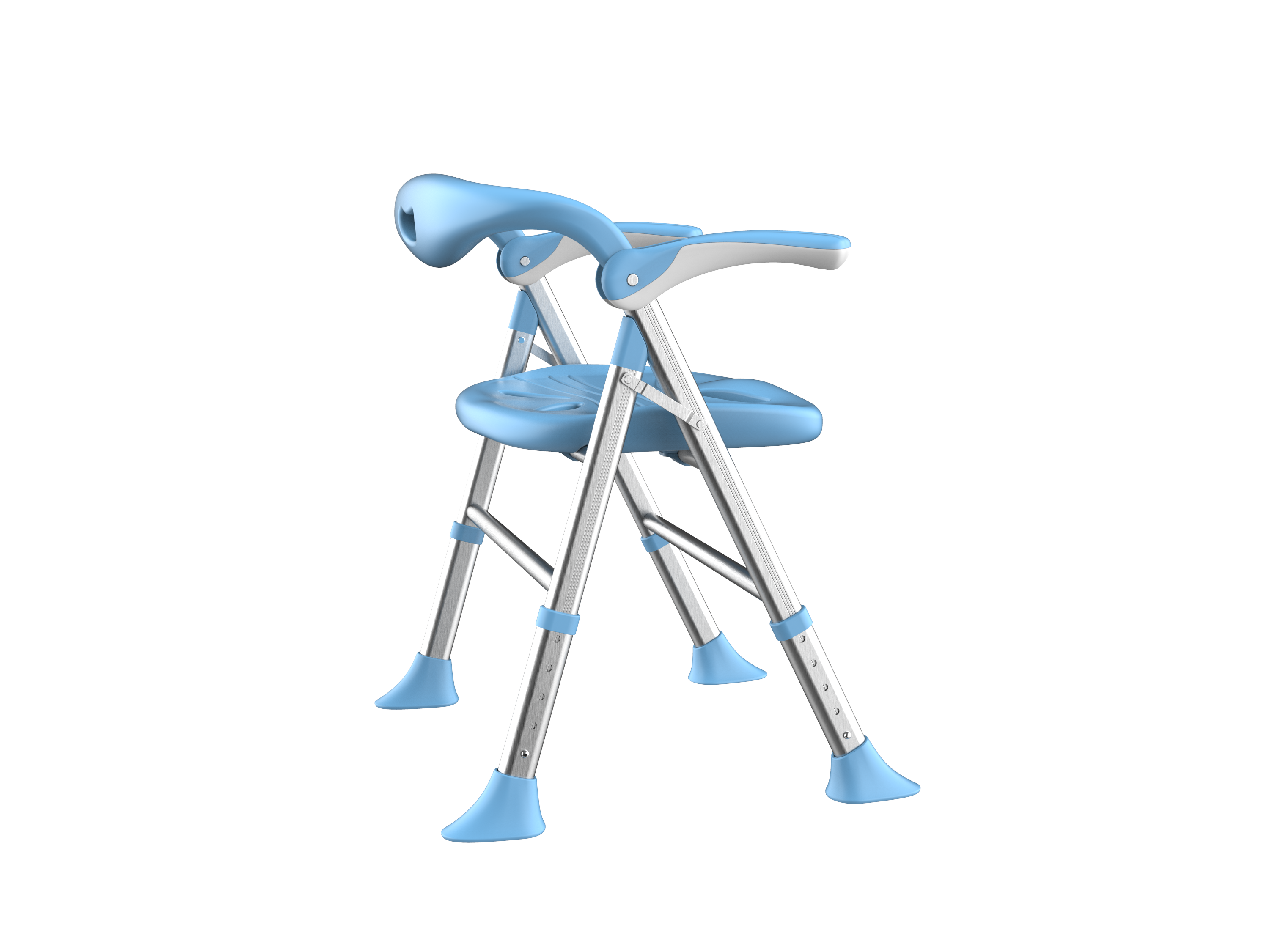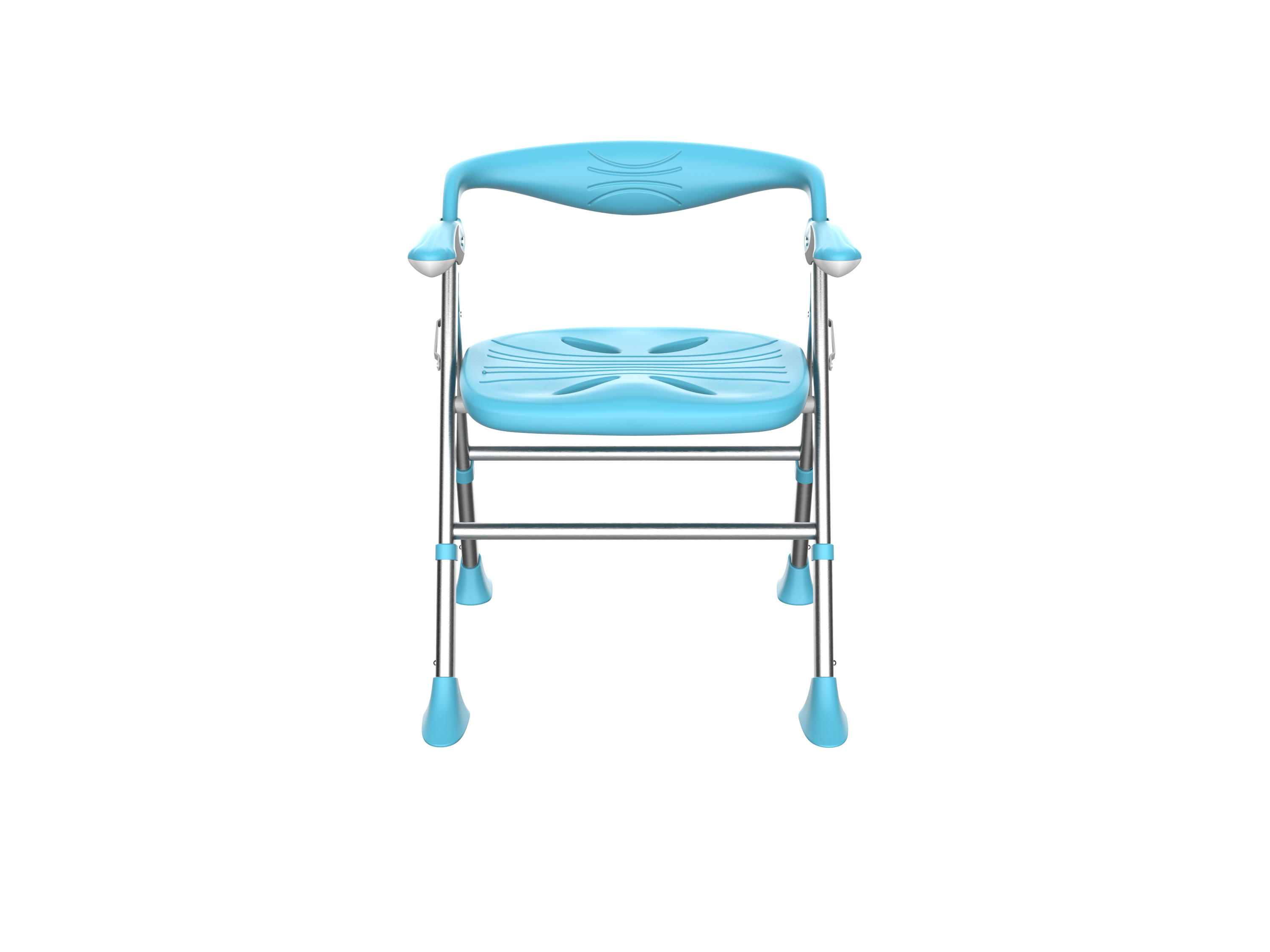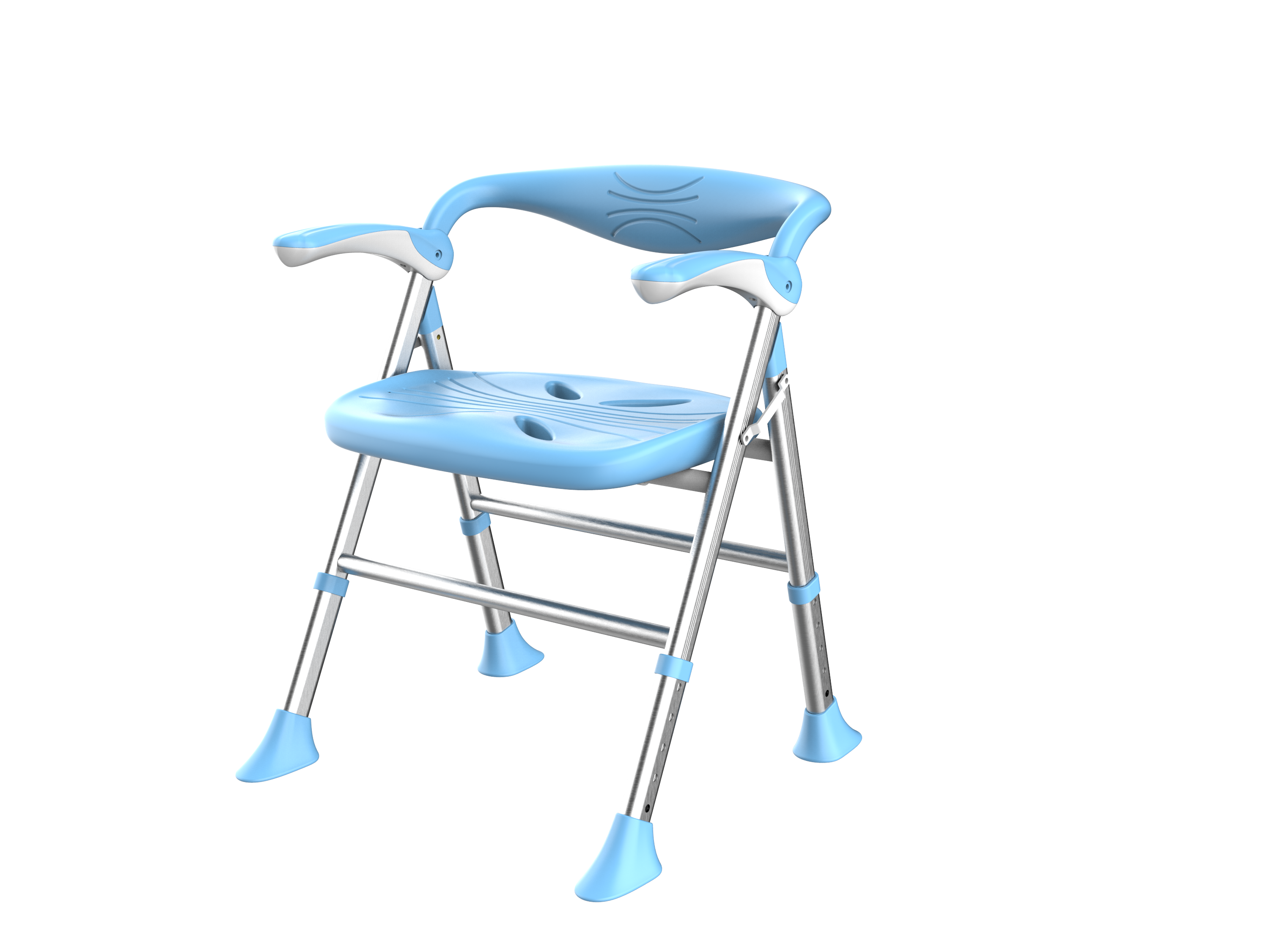 1. Foldable 2. The armrest can be flipped up 3. Sitting board with water channel and leakage hole 4. Height adjustable in 5 levels 5. With backrest 6. Low backrest design, more suitable for shower use 7. The width of the front and rear brackets can be widened according to the height of the chair, making the chair support more stable