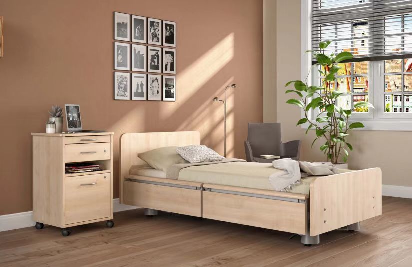 Sentida SC The Sentida SC nursing bed also offers an impressive variety of customization options that not only provide effective fall prevention, but also promote resident mobility. Immerse yourself in the world of the sentida sc and discover how it improves residents' quality of life and caregivers' work in equal measure. 1.Low position 23 cm - Safe sleeping without limiting personal needs. The low position with 23 cm offers ? a homelike appearance without disturbing components, ? a sensible solution without making the resident feel restricted, ? the possibility for the resident to still stand up safely with his or her own strength