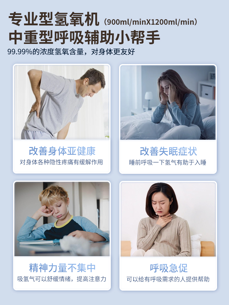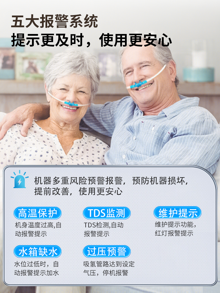 1. 99.99% high hydrogen concentration, enjoy pure gas. 2. Gas production rate: VST-XH5-1350: gas production rate 1350ml/min. 3. Gas production rate: VST-XH5-1800: gas production rate 1800ml/min. 4. Hydrogen and oxygen outlets are separately designed, can inhale hydrogen/can inhale oxygen/can inhale both hydrogen and oxygen. 5. The product screen uses a marquee design, standby screen off to save power and be quieter. 6. It uses a PEM pure water electrolysis cell and a dedicated SPE ion membrane from American Vishilton, with precious metal iridium oxide. 7. Five major alarm prompts: high temperature protection/water tank water shortage/TDS monitoring/maintenance reminder. 8. Multi-purpose machine, can be used for inhaling hydrogen, inhaling oxygen, bathing, soaking feet, washing face, and washing hair.