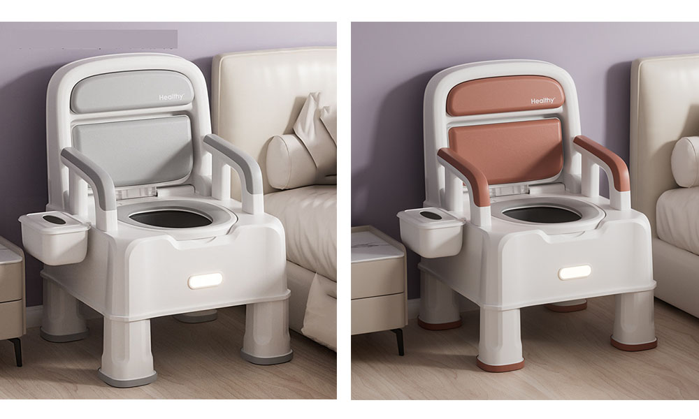 No more worries about getting up at night! The 738 Adult Portable Toilet guards your every night. It serves two purposes: a comfortable seat and a thoughtful toilet, which can be switched in an instant with a simple flip. The elevated backrest provides stable support for the waist, making toileting easy and comfortable. Adjustable height ensures it can be used by everyone in the family; non-slip soft bottom keeps it steady and prevents tipping. The PU soft pad ensures no discomfort from prolonged sitting, and the PP material remains as good as new for years. A specially designed detachable handle makes it extremely convenient to use by the bed.