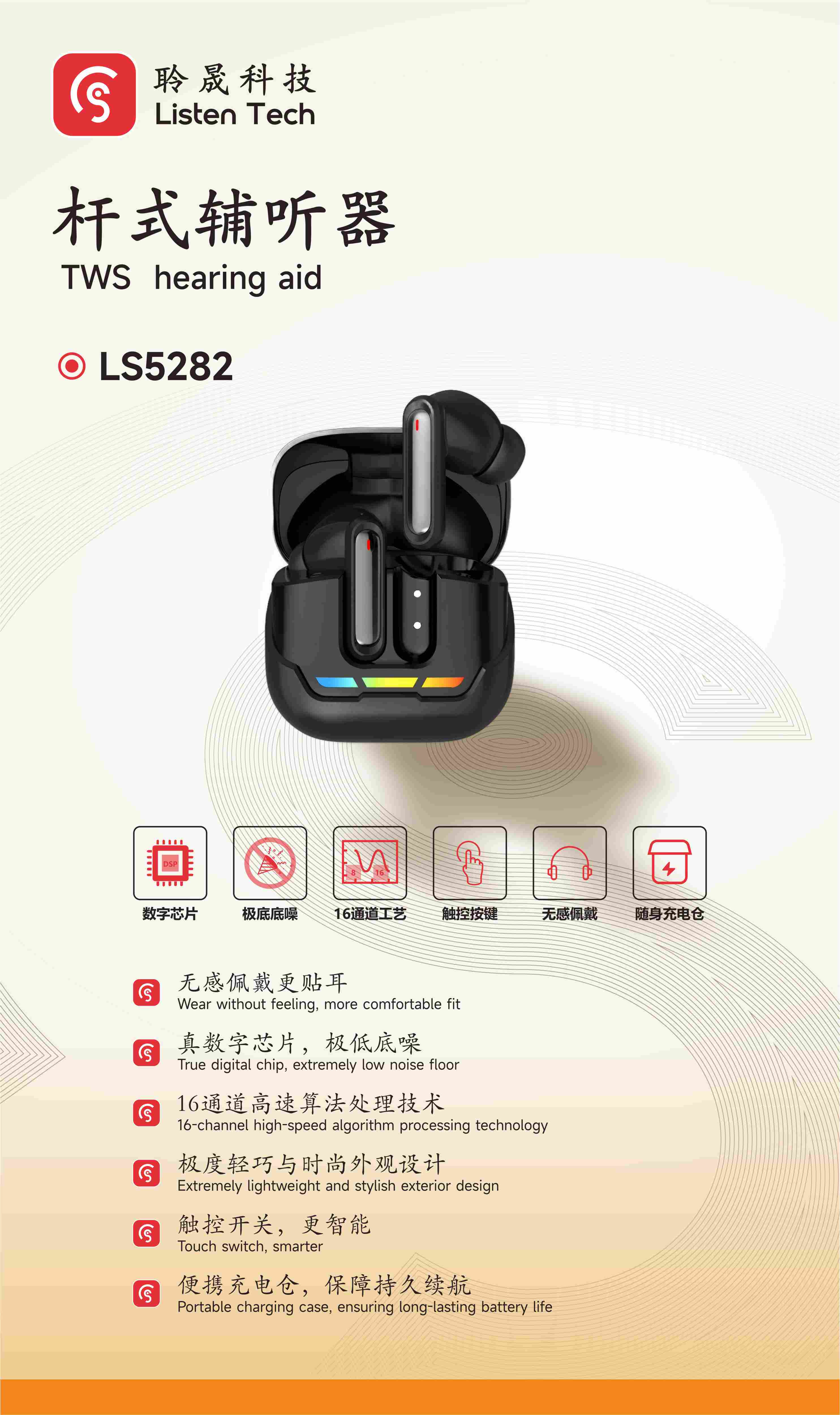 Wear without feeling, more comfortable fit True digital chip, extremely low noise floor 16-channel high-speed algorithm processing technology Extremely lightweight and stylish exterior design Touch switch, smarter Portable charging case, ensuring long-lasting battery life