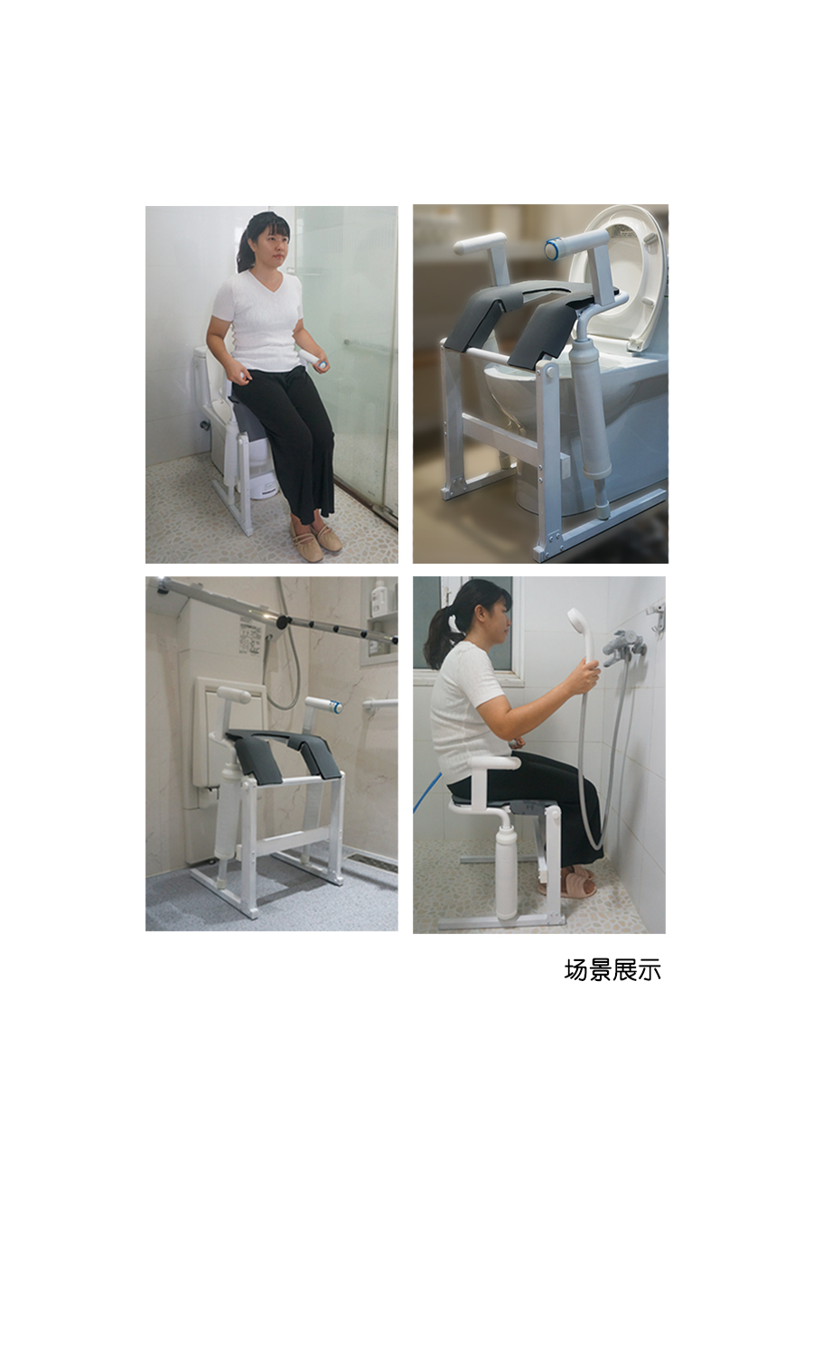 淋浴間、衛(wèi)生間屬于私密空間,老年人如果能在這些空間更多的自理,心理上會(huì)更自信。老年人在以上場(chǎng)景,風(fēng)險(xiǎn)較高的動(dòng)作就是坐下和起立。坐下過程中,腿部力量下降的人群較難緩慢的坐下;起立過程中,大腿90度彎曲較難發(fā)力,進(jìn)而身體需要前傾、重心前移,更進(jìn)一步造成起身頭部移動(dòng)幅度大,容易造成一過性缺血頭暈。