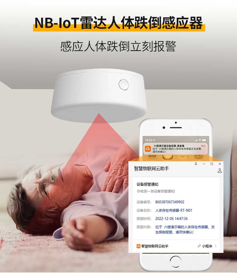 智能跌倒報警雷達(dá)基于調(diào)頻連續(xù)波FMCW雷達(dá)技術(shù),實(shí)現(xiàn)雷達(dá)掃描區(qū)域人員感知功能,識別人體姿態(tài)動作,在發(fā)生跌倒、滯留等異常行為時通知監(jiān)護(hù)人并及時救治??瑟?dú)立安裝在天花板或墻壁,適用于居家養(yǎng)老、社區(qū)養(yǎng)老、智能家居、安防等領(lǐng)域,衛(wèi)生間、浴室、客廳、臥室等場所監(jiān)護(hù)場景。