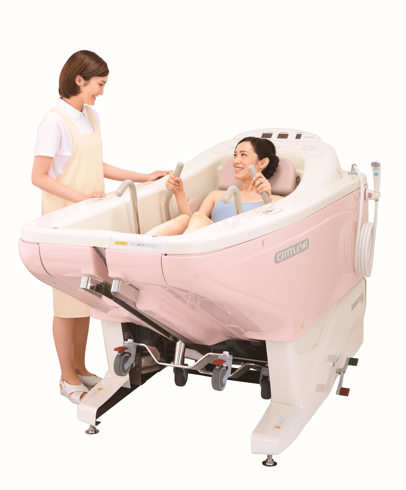 配有易于進(jìn)行洗身的平躺功能。 2) 防止跌落,側(cè)面護(hù)板能夠使洗浴者保持姿勢,洗身時(shí)能夠防止跌落 3) 安全、安心的對(duì)面式洗浴,能夠確認(rèn)其全身狀況,使洗浴更為安全。 4) 水深能夠達(dá)到肩部,便于放松身心舒適洗浴。 5) 體型較小的人也可安心洗浴的追加放水功能。 6) 配備洗浴時(shí)間顯示功能。 7) 更流暢地進(jìn)入浴缸,洗浴用輪椅是一體結(jié)構(gòu),洗浴時(shí)不需要分離輪椅,操作時(shí)聲音小,震動(dòng)輕,能夠更流暢的進(jìn)入浴缸