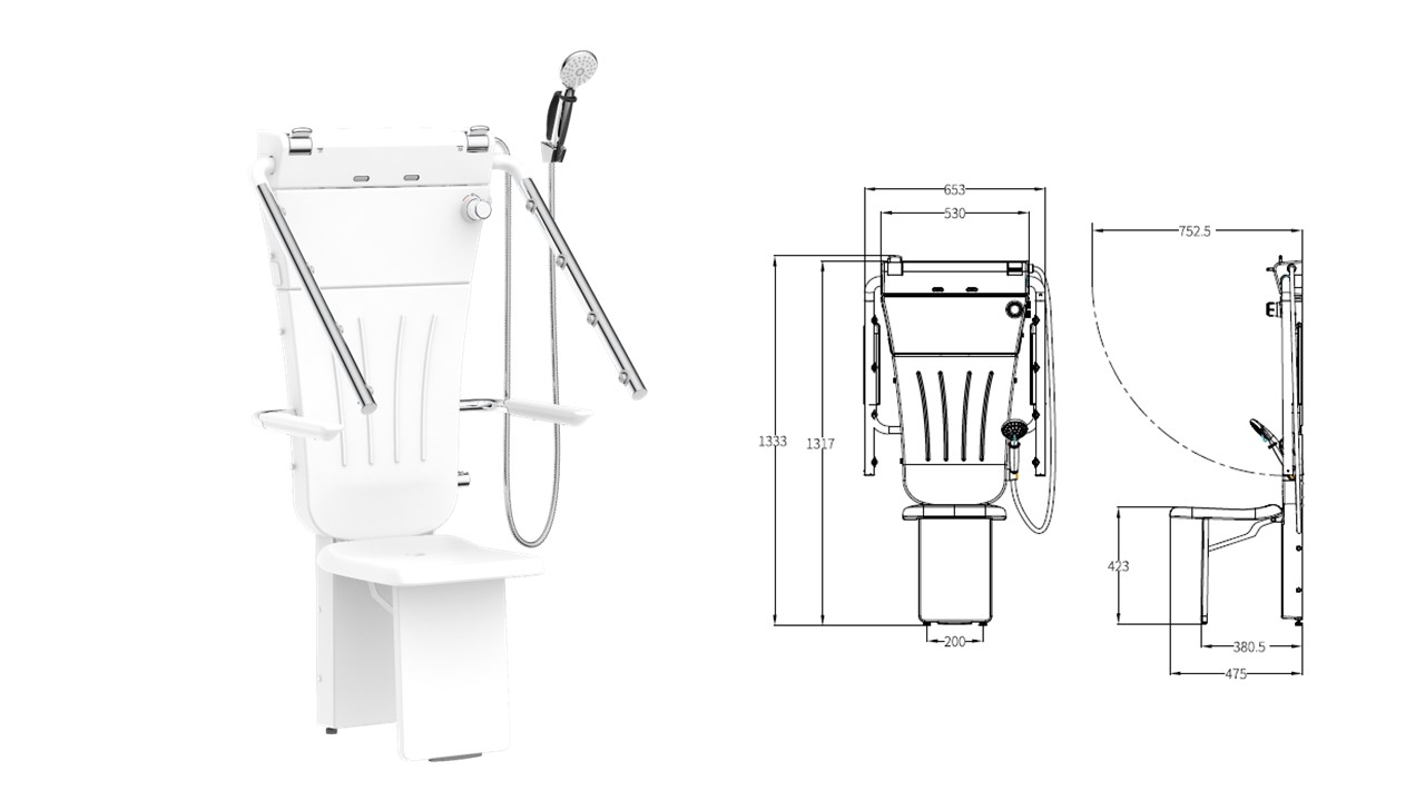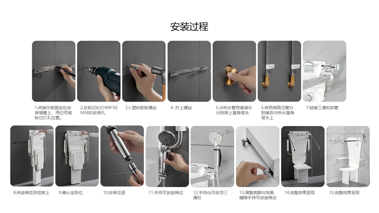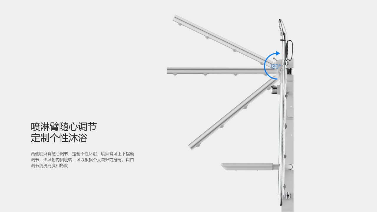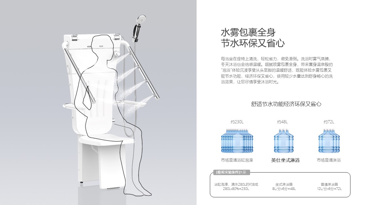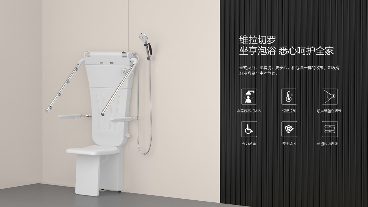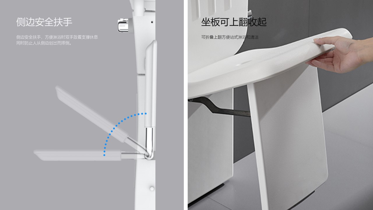 多功能坐式淋浴椅是一種獨(dú)立的生活輔助設(shè)備,允許老年人或行動(dòng)不便的用戶(hù)坐著淋浴。 它對(duì)老年人和行動(dòng)不便的人來(lái)說(shuō)提供一種寶貴的洗浴體驗(yàn),并為各種用戶(hù)提供額外的舒適感。坐在座椅上悠閑地淋浴,可使您身心溫暖。座位扶手可折疊,收納即方便又節(jié)省空間。淋浴臂兩側(cè)共八個(gè)出水嘴,出水嘴可以自由調(diào)節(jié)出水角度,讓用戶(hù)體驗(yàn)包裹式淋浴??梢詫?shí)現(xiàn)多種不同的洗浴體驗(yàn),坐式洗浴、站式洗浴、側(cè)噴按摩或背部按摩等。