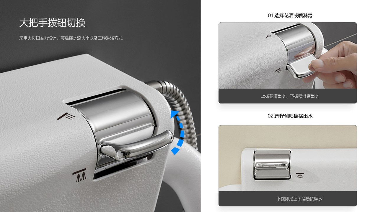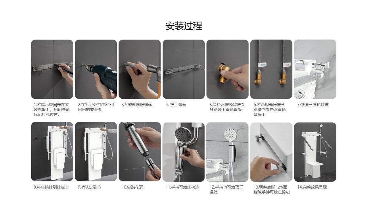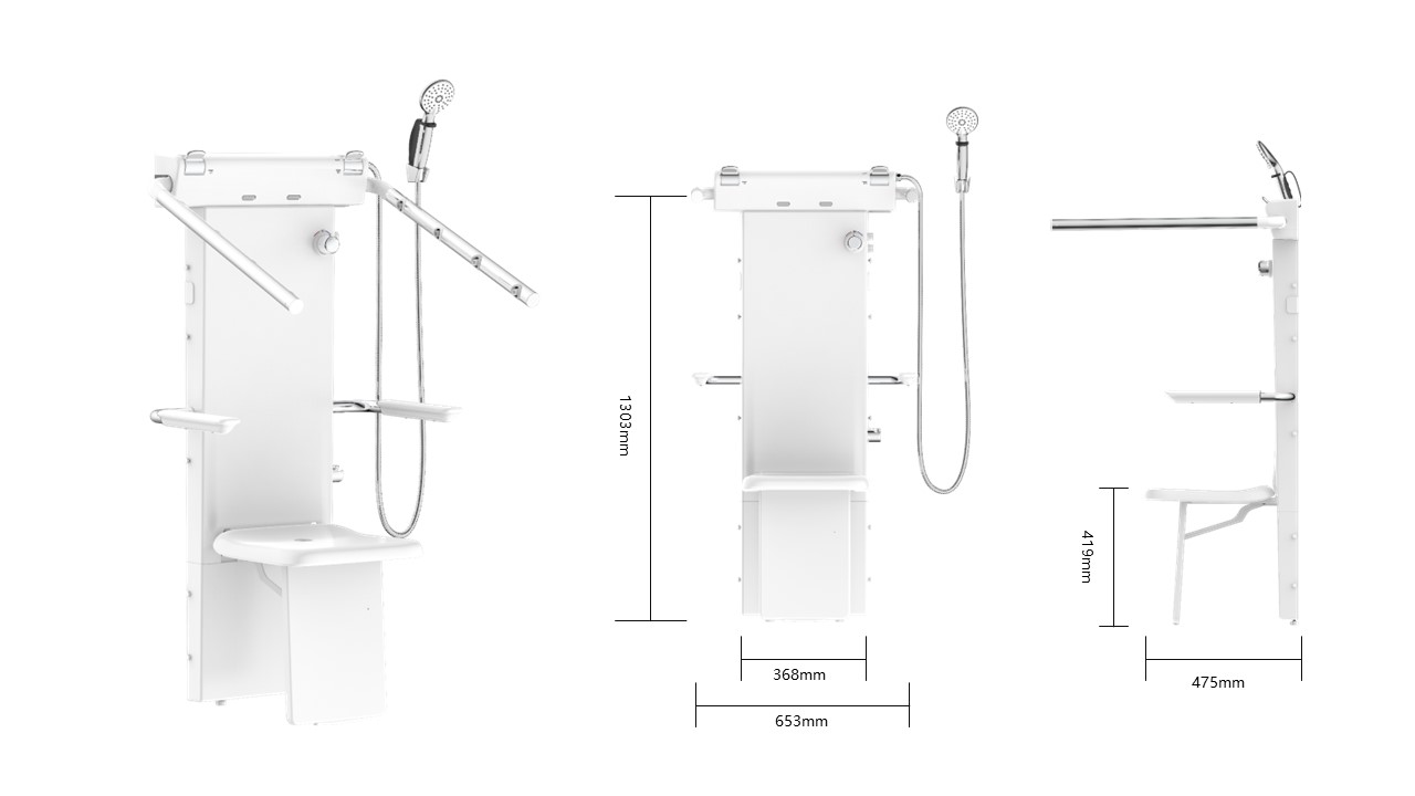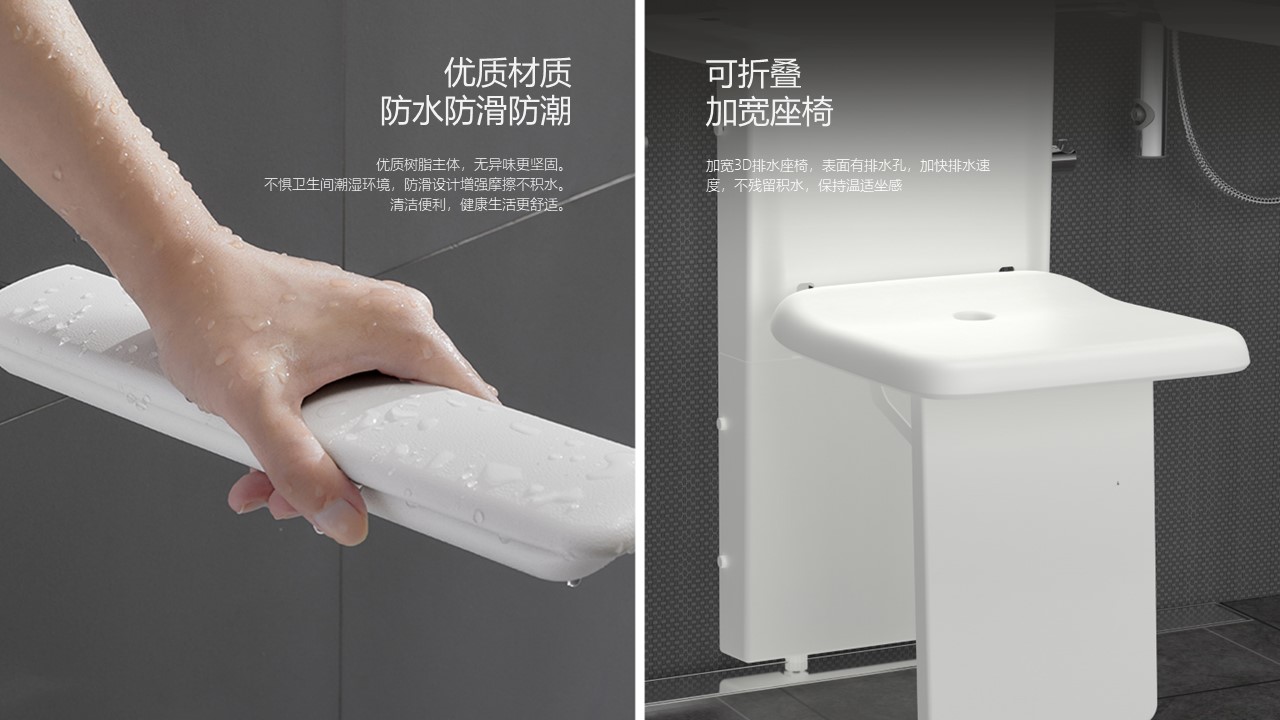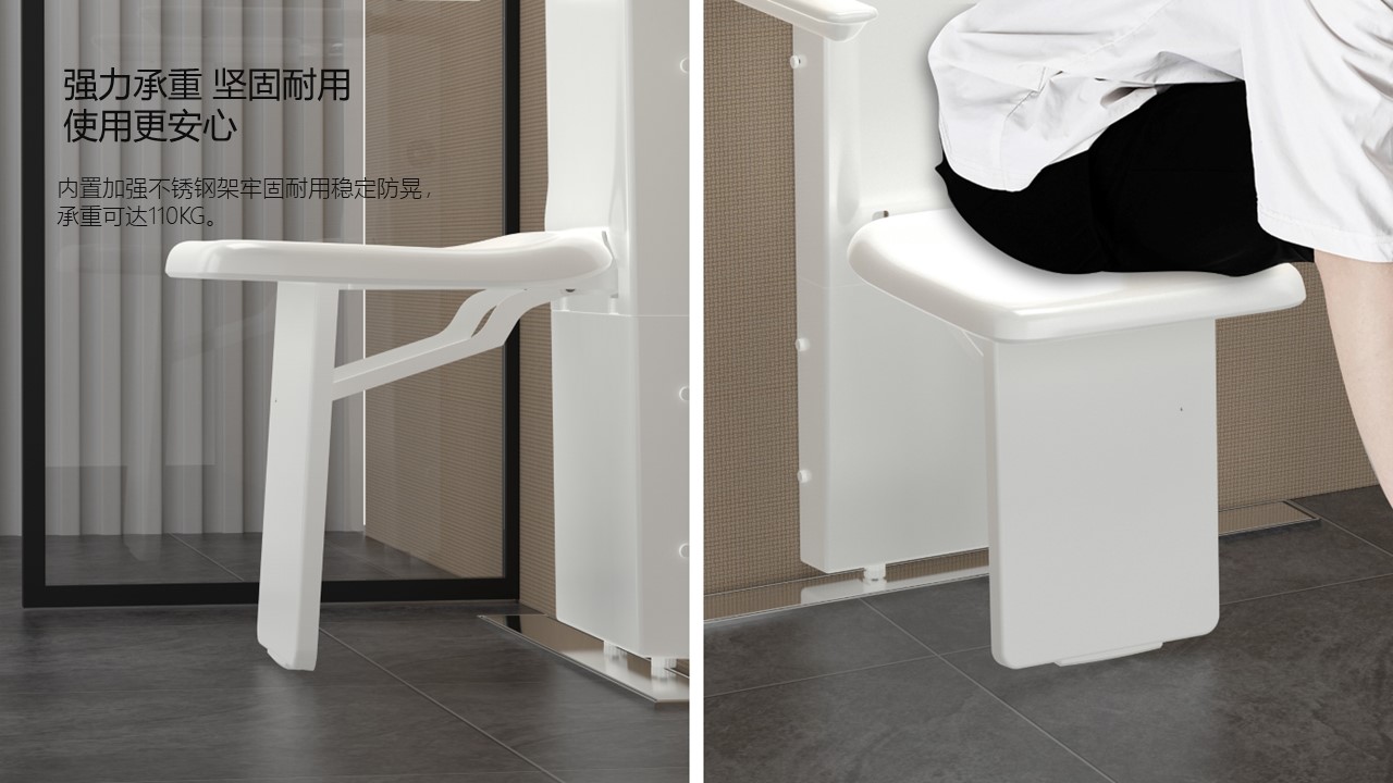多功能坐式淋浴器是一種獨(dú)立的生活輔助設(shè)備,允許老年人或行動(dòng)不便的用戶(hù)坐著淋浴。 它對(duì)老年人和行動(dòng)不便的人來(lái)說(shuō)提供一種寶貴的洗浴體驗(yàn),并為各種用戶(hù)提供額外的舒適感。坐在座椅上悠閑地淋浴,可使您身心溫暖。座位扶手可折疊,收納即方便又節(jié)省空間。淋浴臂兩側(cè)共八個(gè)出水嘴,出水嘴可以自由調(diào)節(jié)出水角度,讓用戶(hù)體驗(yàn)包裹式淋浴??梢詫?shí)現(xiàn)多種不同的洗浴體驗(yàn),坐式洗浴、站式洗浴、側(cè)噴按摩或背部按摩等
