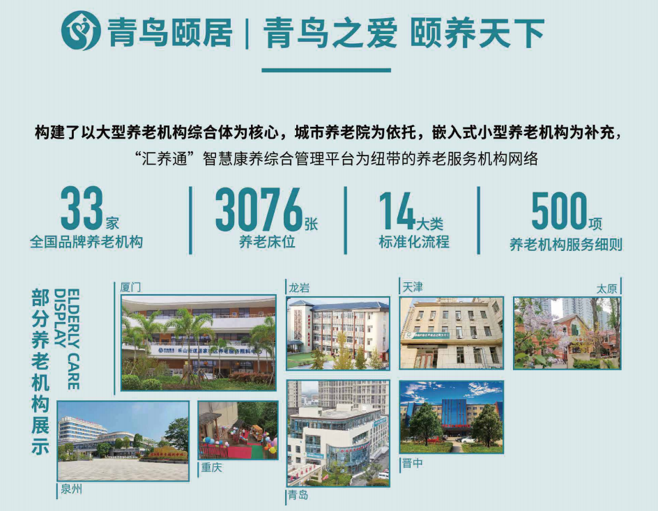 “青鳥頤居”是公司養(yǎng)老機(jī)構(gòu)運(yùn)營的服務(wù)品牌,提供老年人托養(yǎng)、醫(yī)療保健、康復(fù)療養(yǎng)、文化娛樂、教育培訓(xùn)為一體的綜合性養(yǎng)老服務(wù)。機(jī)構(gòu)配備了專業(yè)服務(wù)團(tuán)隊(duì),從衣食住行、醫(yī)療健康、心理輔導(dǎo)等多方面為老年人提供專業(yè)化服務(wù),形成14個標(biāo)準(zhǔn)化流程,近500項(xiàng)生活照料服務(wù)細(xì)則。