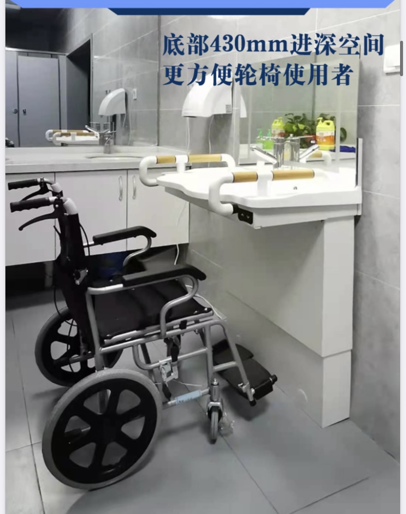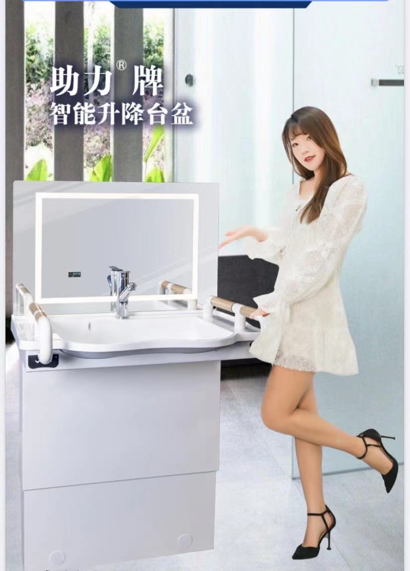 助力牌智能升降臺(tái)盆,采用整體簡(jiǎn)約科技化設(shè)計(jì),臺(tái)盆與智能云鏡整體升降,最大升降行程20mm,可適用于各類身高人群,漸進(jìn)式弧面水臺(tái)設(shè)計(jì),有效減少水花飛濺,原木色抗菌PVC扶手,全面保護(hù)用戶洗漱安全。有掛壁式和地腳支撐兩種固定形式,可幫助老人,孩童及輪椅用戶自主洗漱與整理儀容