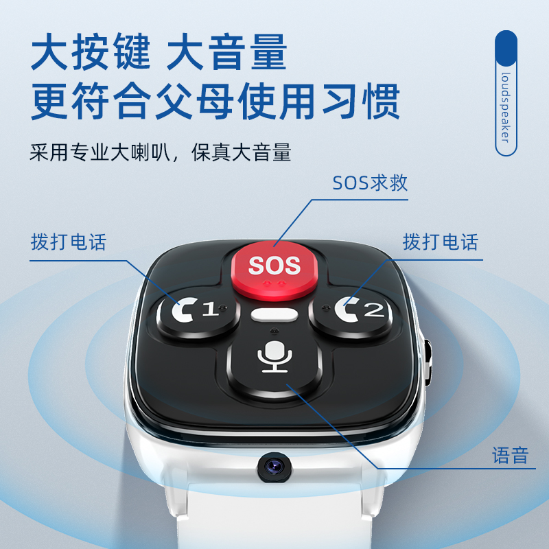 功能:撥打電話、鈴聲尋找、免打擾、一鍵語音聊天、插卡使用 5-7天、4G 定位、室內(nèi)定位、電子圍欄、實(shí)時(shí)行走軌跡、GPS+北斗、拒絕陌生來電、磁吸充電、來電提醒、真人語音提醒、安全區(qū)域、通訊錄、IP66級(jí)防水、易拆換表帶、加大按鍵、大音量、體溫檢測(cè)、心率血壓血氧、健康計(jì)步、一鍵 S05、吃藥提醒、跌倒報(bào)警、睡眠檢測(cè)、鬧鐘提醒、定位頻率、快捷回?fù)堋?