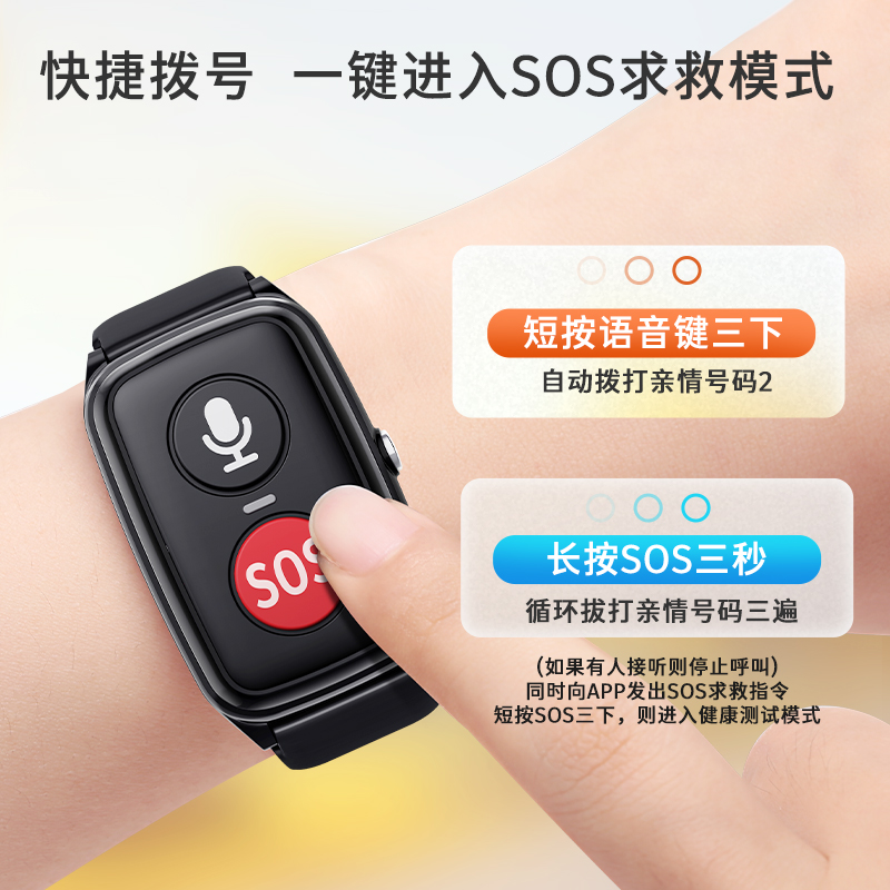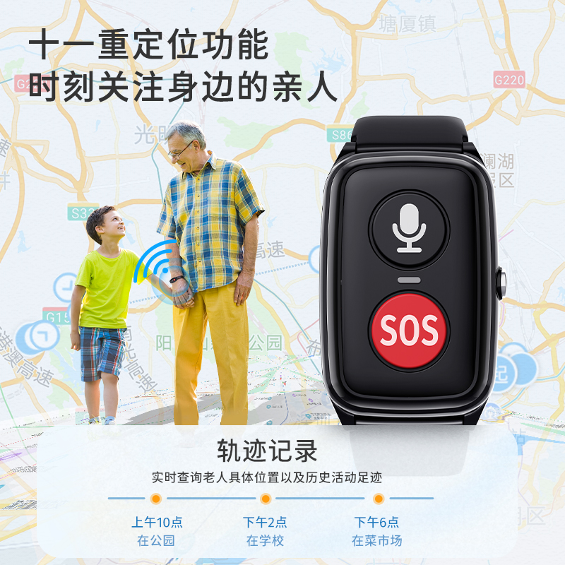 功能:定位、心率、血壓、血氧(華為同IC)、全網(wǎng)通、微聊、雙向通話、電子圍欄、歷史軌跡查詢/播放、防水、脫落報警、電話本。