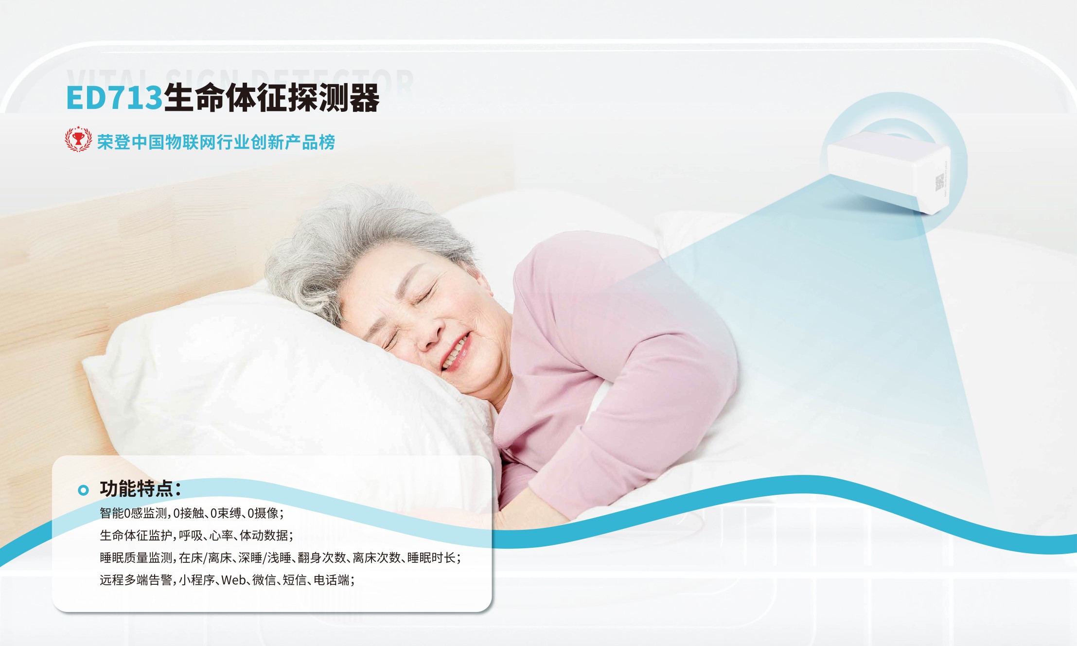 該產(chǎn)品基于毫米波雷達(dá)、邊緣計(jì)算、大數(shù)據(jù)和AI技術(shù),可以對(duì)躺著(或坐著)的人,監(jiān)護(hù)采集和實(shí)時(shí)遠(yuǎn)程分享睡眠及生命體征數(shù)據(jù),實(shí)現(xiàn)睡眠質(zhì)量分析、健康指標(biāo)評(píng)估和異常報(bào)警等功能,具有非接觸不需佩戴、無(wú)攝像不侵犯隱私、24小時(shí)持續(xù)無(wú)間斷的感知探測(cè)特點(diǎn),是制定智慧科學(xué)康養(yǎng)方案的有力助手。
