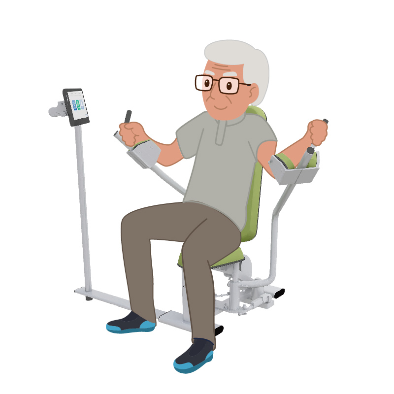 1.肌肉訓(xùn)練活化的部位:胸大肌、三角肌、棘下肌、肱二頭肌、闊背肌、斜方肌、手部伸?。? 2.增強(qiáng)手腕、上肢、胸背中部肌群肌力; 3.改善肩關(guān)節(jié)內(nèi)收外展活動(dòng)度,改善“肩周炎”引起的肩關(guān)節(jié)活動(dòng)受限; 4.強(qiáng)化上肢和胸背部肌群力量,提升日常生活搬運(yùn)與手扶能力。 5.數(shù)據(jù)上傳:運(yùn)動(dòng)結(jié)束后數(shù)據(jù)將會(huì)上傳至云端生成健康檔案,通過移動(dòng)端隨時(shí)隨地可查看自身運(yùn)動(dòng)數(shù)據(jù)。