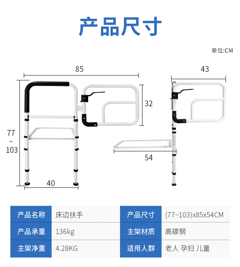 可旋轉(zhuǎn)床邊扶手,通用床型