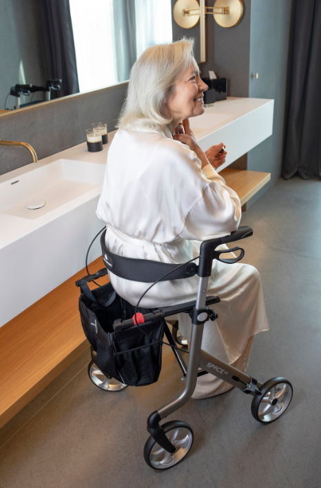瑞格-賽貝斯的整車(chē)造型簡(jiǎn)潔大方,人字型的高強(qiáng)度鋁合金邊框,結(jié)實(shí)耐用。小而輕巧的設(shè)計(jì)使它在室內(nèi)外都能輕松自如地行走、升降和轉(zhuǎn)彎。 多種顏色可選,有低調(diào)素雅的灰色,經(jīng)典耐看的金色和時(shí)尚亮眼的藍(lán)色,滿足不同用戶的需求。 標(biāo)準(zhǔn)配置包含靠背帶和拐杖支架,還有很多配件供選擇。