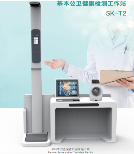 測量身高、體重、BMI、人體成分、血壓、血氧、血糖、尿酸、總膽固醇、體溫、十二導(dǎo)心電、腰臀比、血脂四項(xiàng)。人性化設(shè)計(jì),一站式操作,通過實(shí)時(shí)語音、動畫視頻,引導(dǎo)檢測人員自主完成測量,并與之前測量數(shù)據(jù)實(shí)時(shí)對比。支持第二代身份證識別、也可手動輸入身份證號、手機(jī)號。搭載15寸液晶面板,可全自動生成體檢報(bào)告并打印,一步自助建檔,快速輕松建立個(gè)人健康電子檔案,用互聯(lián)網(wǎng)上傳至健康檢查管理后臺終端,支持病情大數(shù)據(jù)統(tǒng)