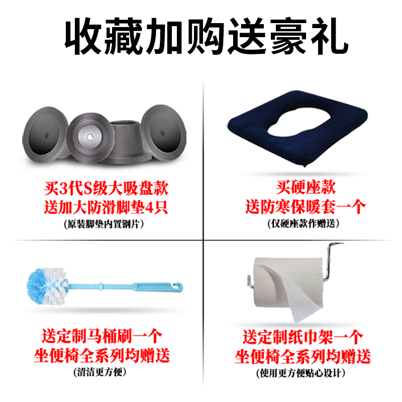 第三代坐便椅,全鋁合金主架,防水防銹,配備大吸盤(pán)安全防側(cè)翻