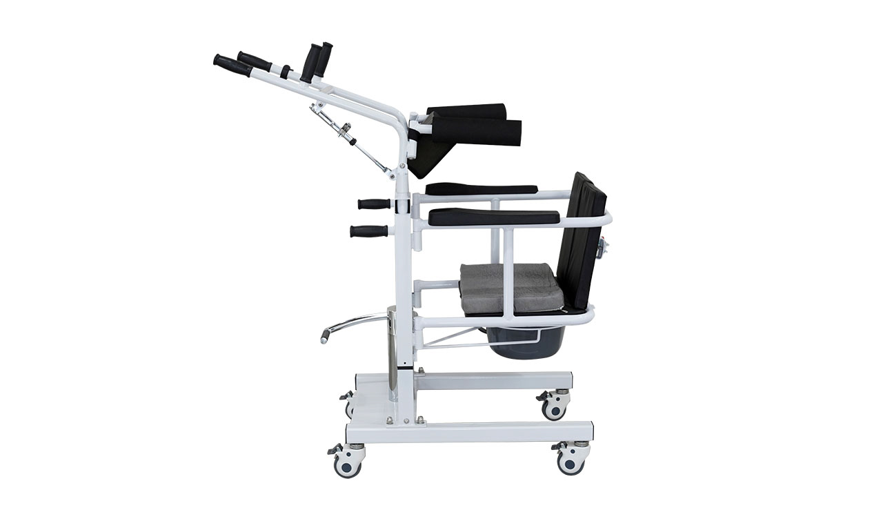1.鋼質(zhì)加厚車架,液壓升降裝置; 2.前后4寸萬向靜音輪; 3.帶輔助起身架,方便脫褲子和清潔; 4.輔助支架腋下和前面有加厚海棉,起身時與身體柔軟接觸; 5.扶手墊為PU材質(zhì),握把為PVC材質(zhì),方便清潔; 6.座墊和靠墊為木板加海棉,舒適性更好