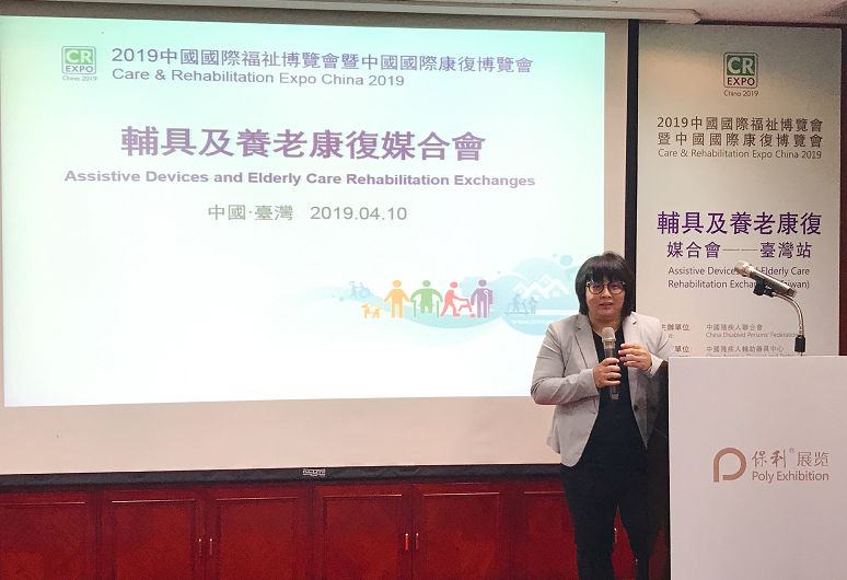 社團(tuán)法人中華科技輔具協(xié)會創(chuàng)會理事長壽明驊先生、臺灣長期照顧關(guān)懷協(xié)會理事長林菡雅女士致歡迎詞,分別介紹了臺灣地區(qū)在輔具、養(yǎng)老康復(fù)照護(hù)和養(yǎng)老服務(wù)領(lǐng)域累積的豐富經(jīng)驗(yàn)和先進(jìn)模式,強(qiáng)調(diào)兩岸康養(yǎng)產(chǎn)業(yè)具有很強(qiáng)的互補(bǔ)性和廣闊的合作空間,表明將繼續(xù)攜手福祉博覽會、SIC老博會,帶領(lǐng)臺灣企業(yè)開拓大陸?zhàn)B老、康復(fù)市場強(qiáng)烈的意向。