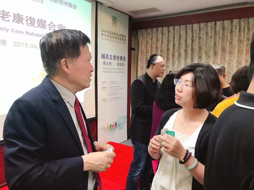 中華科技輔具協(xié)會、臺灣長期照顧關(guān)懷協(xié)會、香港安老咨詢委員會、中華兩岸養(yǎng)老產(chǎn)業(yè)協(xié)會、臺灣新北市中華老齡產(chǎn)業(yè)發(fā)展促進(jìn)會、中華兩岸醫(yī)療健康促進(jìn)協(xié)會、中國殘疾人輔助器具中心、廣州市保利錦漢展覽有限公司有關(guān)代表,床的世界、佳新、德林、康揚(yáng)、福寶、麥思、天祿、吉喬等近60家臺灣地區(qū)從事養(yǎng)老、輔具生產(chǎn)、服務(wù)的企業(yè)代表以及HEA亞洲健康互聯(lián)、TradeWinds、創(chuàng)新長照雜志等當(dāng)?shù)刂襟w代表出席活動,現(xiàn)場互動踴躍,交流氣氛熱烈。