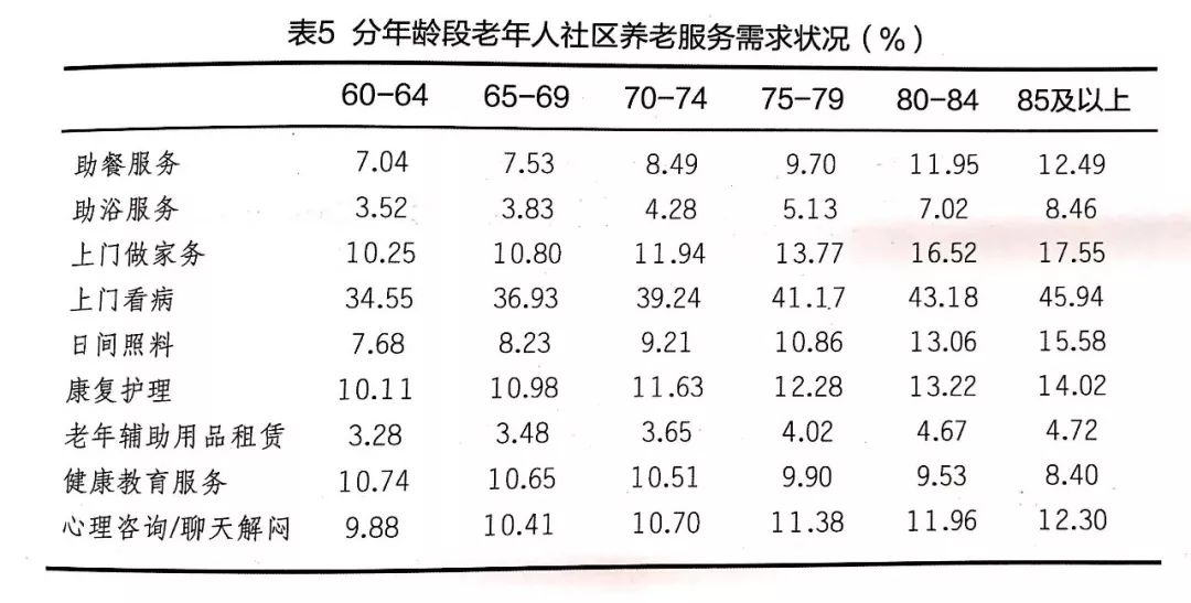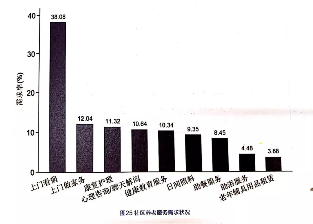 小結(jié):目前,上門看病是老年人社區(qū)養(yǎng)老服務(wù)的主要需求,特別是農(nóng)村老年人、生活困難老年人、完全失能老年人。完全失能、半失能的老年人是社區(qū)養(yǎng)老服務(wù)的主要需求對象。