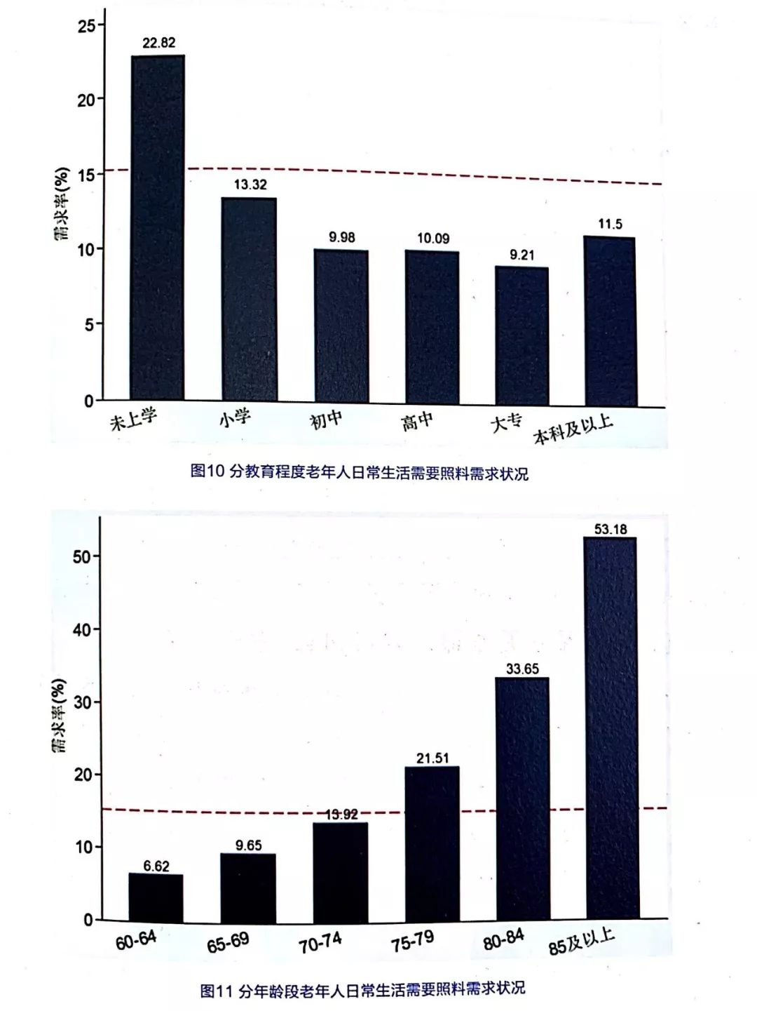 由此可見,完全失能、半失能、生活困難、未上學(xué)、沒有配偶以及75歲以上老年人對日常生活需要照料的需求較高。