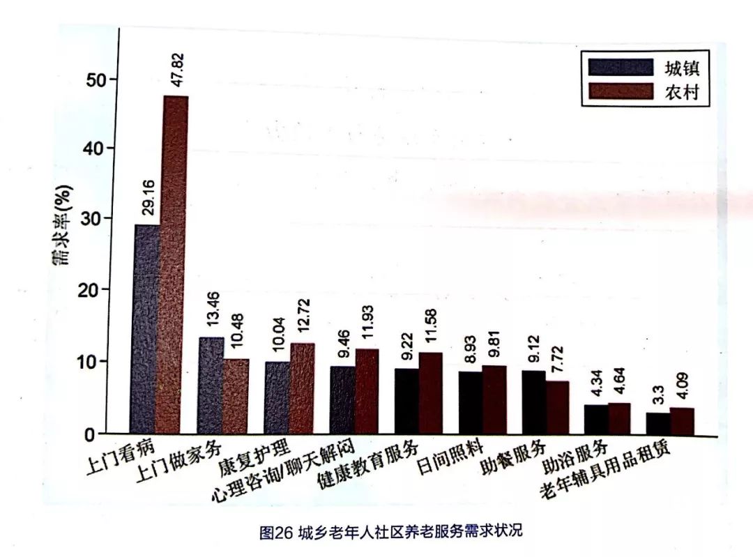 (1)分城鄉(xiāng)、區(qū)域老年人需求狀況