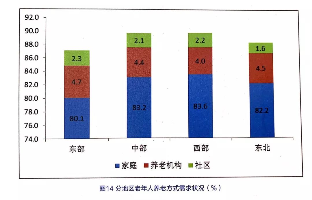 近年來,國家不斷健全完善“以居家為基礎(chǔ),社區(qū)為依托,機(jī)構(gòu)為補(bǔ)充,醫(yī)養(yǎng)相結(jié)合”的養(yǎng)老服務(wù)體系。第四次抽樣調(diào)查重點(diǎn)調(diào)查老年人的日常生活照料需求情況,對家庭、社區(qū)和機(jī)構(gòu)養(yǎng)老方式的選擇情況。文中“家庭養(yǎng)老”不是傳統(tǒng)意義上完全依靠家庭成員承擔(dān)贍養(yǎng)責(zé)任的養(yǎng)老方式,更多的是一種養(yǎng)老地點(diǎn)與環(huán)境的選擇。
