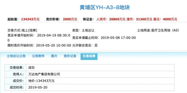 今天(5月20日),萬達(dá)地產(chǎn)集團(tuán)有限公司以134343萬元底價拿下廣州市黃埔區(qū)YH-A3-8地塊,該地塊將用于建設(shè)醫(yī)院和康養(yǎng)項目。