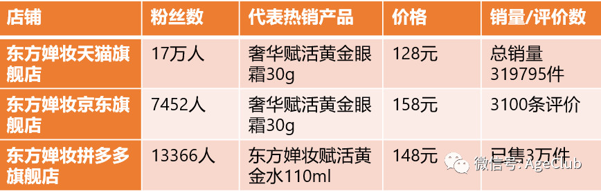 在幾個主流的電商平臺上,東方嬋妝的銷售情況都不錯,尤其是在天貓旗艦店,熱銷產(chǎn)品奢華賦活黃金眼霜總銷量已接近32萬件。