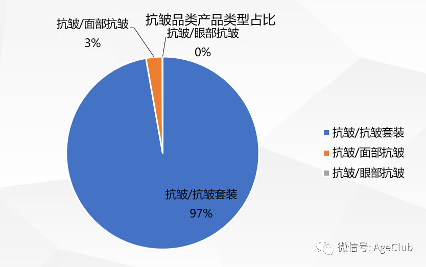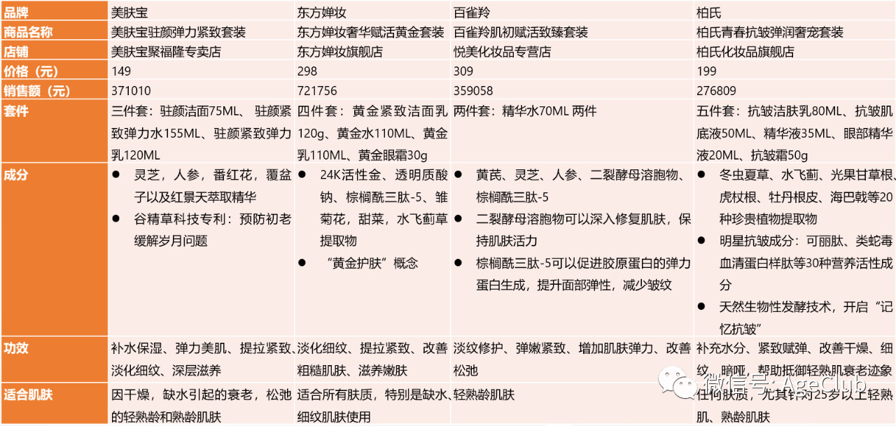 抗皺品類的產(chǎn)品類型以抗皺套裝為主,一般是面部、眼部各種功效產(chǎn)品打包在一起的套裝,這可能說明目前消費(fèi)化妝品的中老年女性對品牌、功效的認(rèn)識較淺,套裝可以免去選擇、搭配的困擾,因此更受她們歡迎。