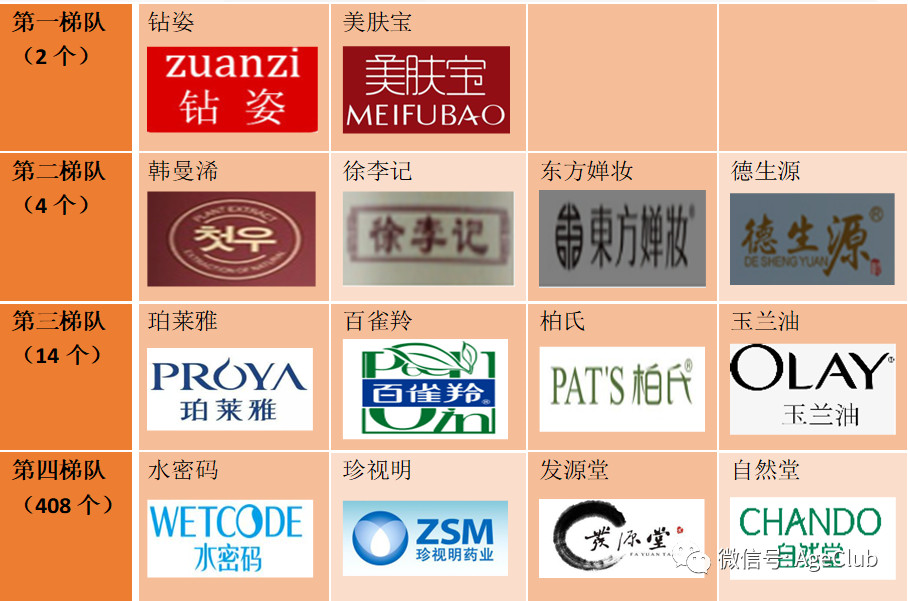 值得注意的是,在第一、第二梯隊(duì)品牌中,知名品牌只有美膚寶,其它如鉆姿、韓曼浠、東方嬋妝等都是以電商、微商為主渠道的品牌。