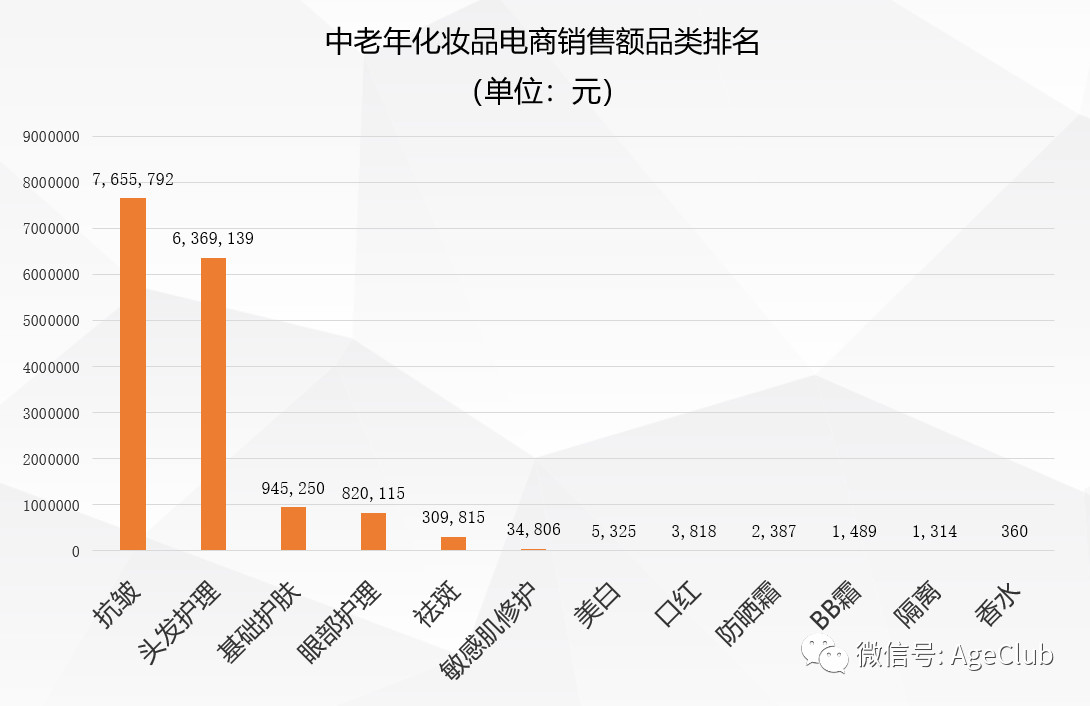 從電商數(shù)據(jù)來看,目前中老年女性的化妝品需求主要集中在功能性產(chǎn)品,尤其是抗皺和頭發(fā)護(hù)理兩大類。