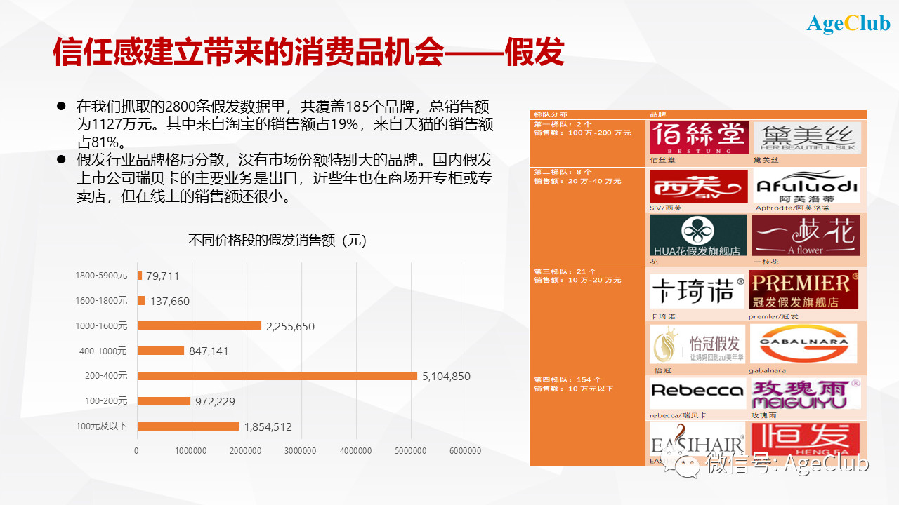這種信任感的建立其實(shí)也是做中老年消費(fèi)品,尤其是高單價(jià)產(chǎn)品的關(guān)鍵。我們最近對(duì)中老年假發(fā)市場(chǎng)做了研究,發(fā)現(xiàn)這個(gè)市場(chǎng)一方面比較混亂,從產(chǎn)品到價(jià)格到品牌到銷售渠道,都有很多不完善的地方。