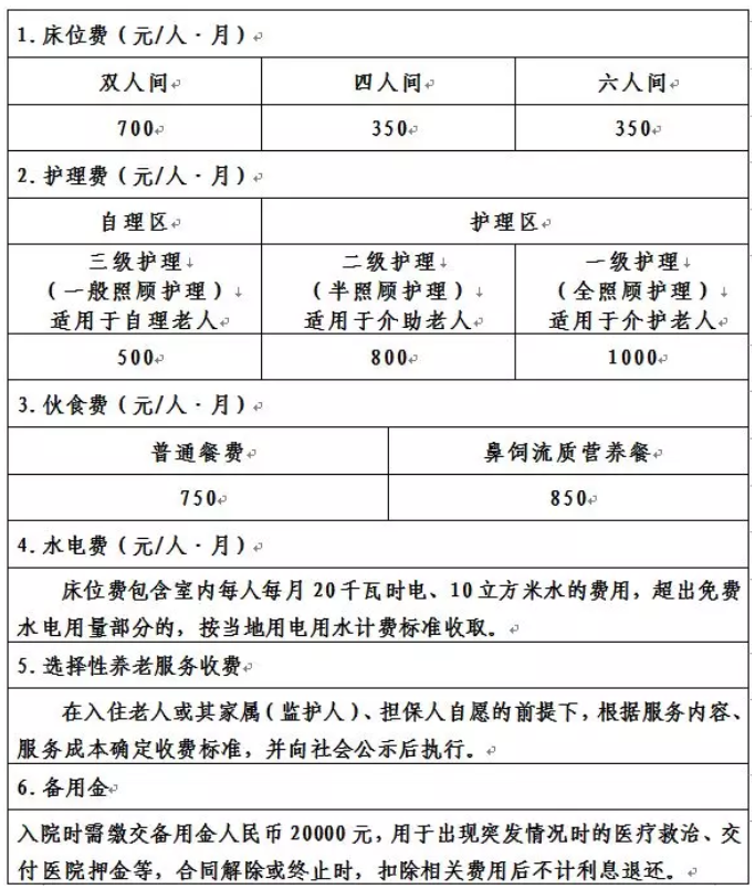 同時(shí),入院時(shí)老人需繳交20000元備用金,用于出現(xiàn)突發(fā)情況時(shí)的醫(yī)療救助、交付醫(yī)院押金等。合同解除或終止時(shí),將扣除相關(guān)費(fèi)用后不計(jì)利息退還。