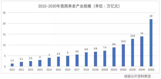 所以有些機構(gòu)預測到2030年,也就是十年之后,中國養(yǎng)老產(chǎn)業(yè)的規(guī)模有可能超過20萬億元 。大家知道今天中國房地產(chǎn)的規(guī)模是在12萬億左右,養(yǎng)老將替代地產(chǎn)毋庸置疑的成為中國的第一大產(chǎn)業(yè)。