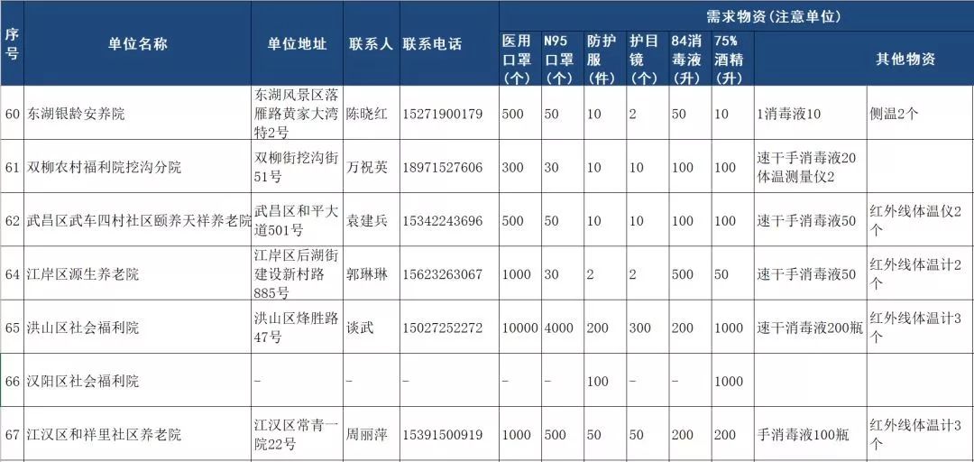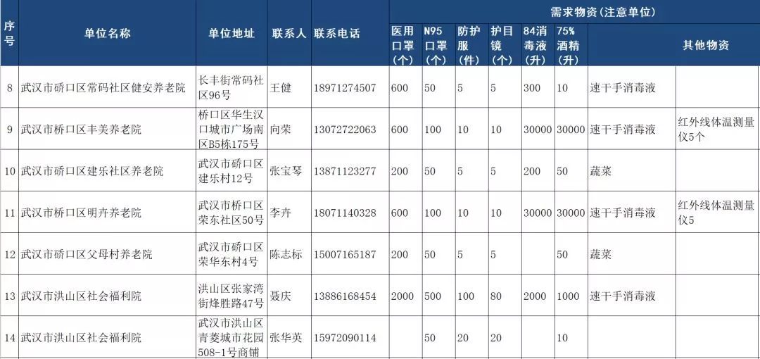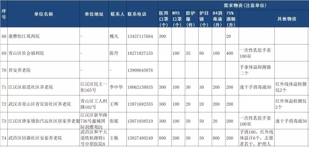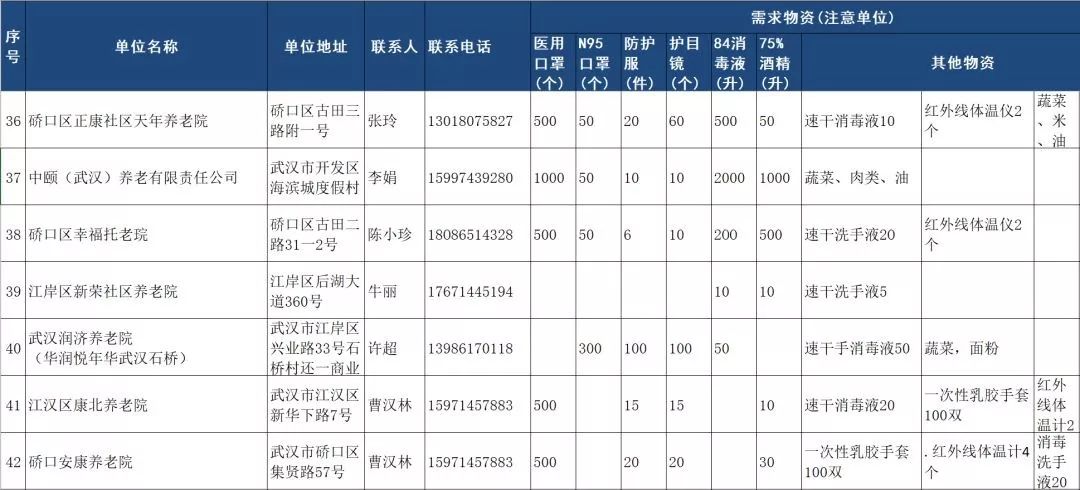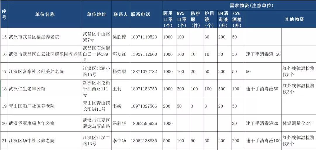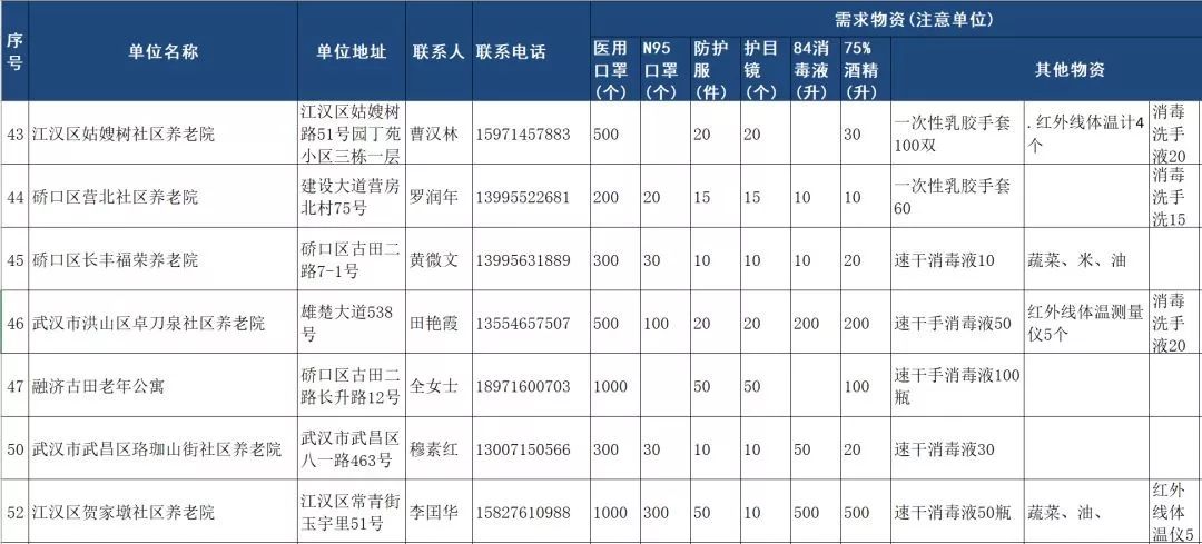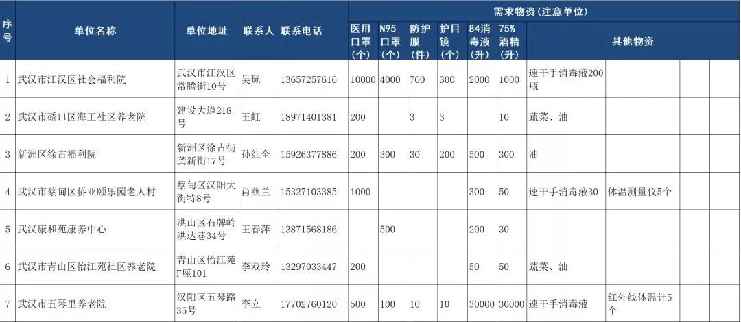 1. 主動收集疫區(qū)養(yǎng)老(醫(yī)養(yǎng))機構(gòu)物資需求詳情