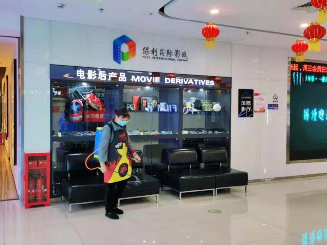 保利影院對公共區(qū)域進(jìn)行消毒
