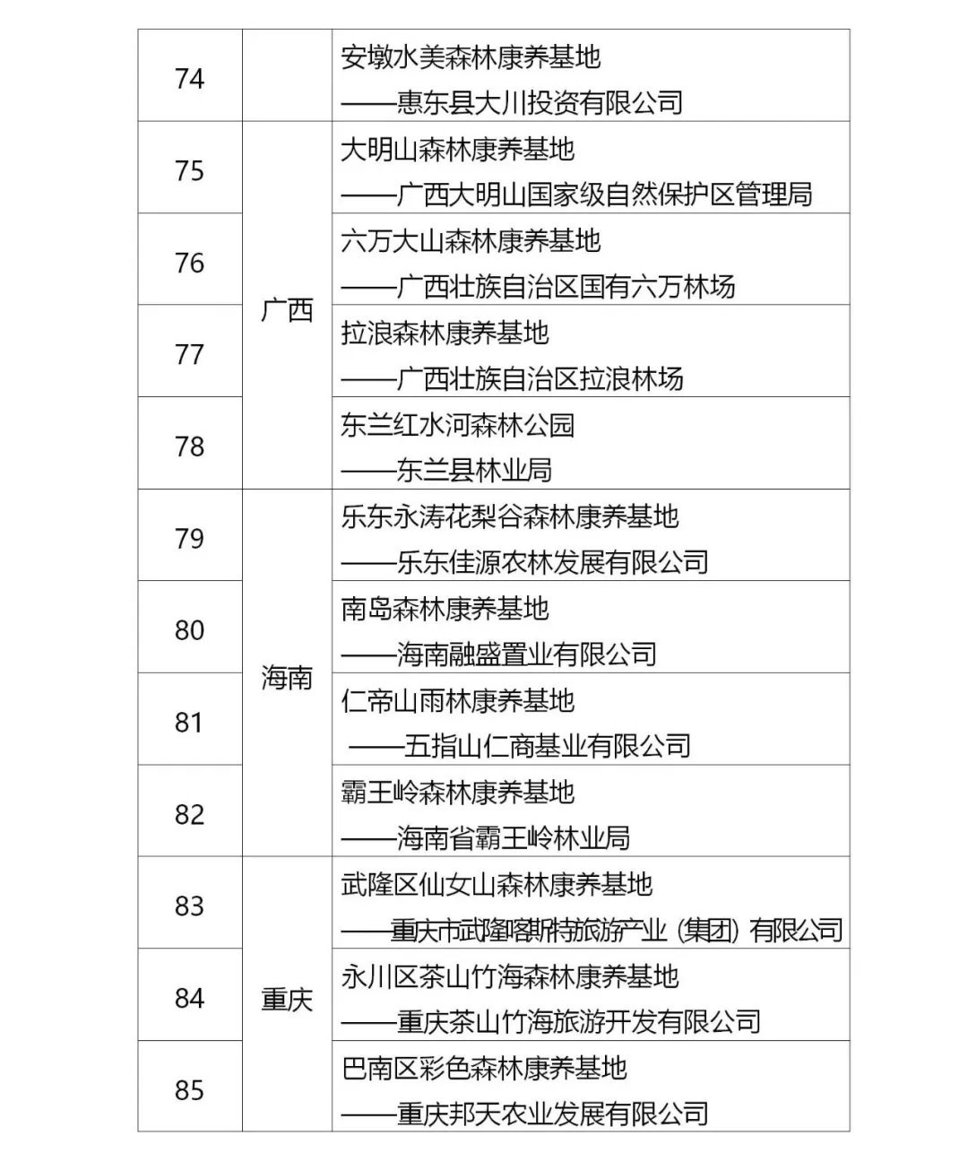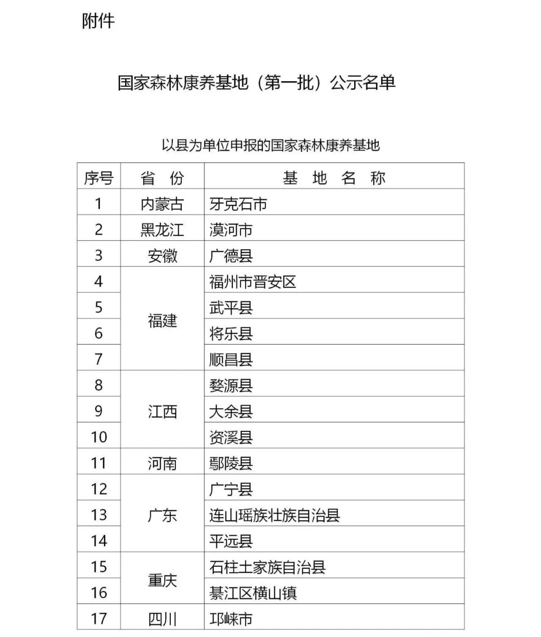 根據(jù)《國(guó)家林業(yè)和草原局辦公室民政部辦公廳國(guó)家衛(wèi)生健康委員會(huì)辦公廳國(guó)家中醫(yī)藥管理局辦公室關(guān)于開展國(guó)家森林康養(yǎng)基地建設(shè)工作的通知》(辦改字〔2019〕121號(hào))要求,四部門聯(lián)合部署開展了國(guó)家森林康養(yǎng)基地建設(shè)工作。經(jīng)省級(jí)推薦、專家評(píng)審等程序,現(xiàn)將遴選出的國(guó)家森林康養(yǎng)基地(第一批)名單進(jìn)行公示,公示期為3月17日至3月24日。