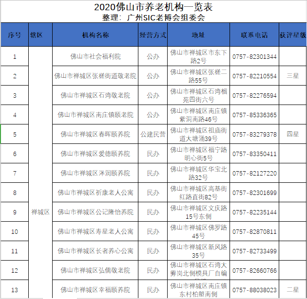 2020年佛山市養(yǎng)老機(jī)構(gòu)一覽表