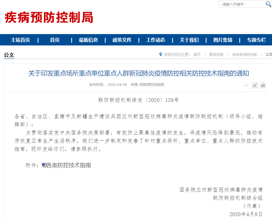 4月9日,國家衛(wèi)健委疾病預(yù)防控制局公布了《關(guān)于印發(fā)重點場所重點單位重點人群新冠肺炎疫情防控相關(guān)防控技術(shù)指南的通知》。
