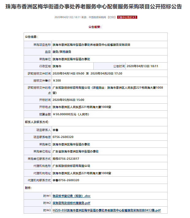 預(yù)算50萬(wàn)元,珠海市一養(yǎng)老服務(wù)中心配餐服務(wù)采購(gòu)項(xiàng)目公開招標(biāo)|5月6日截止