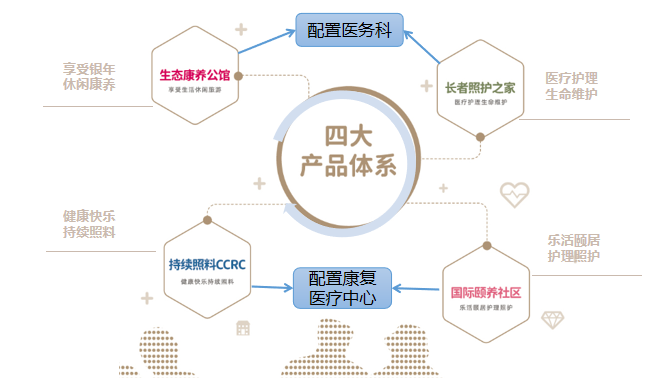 富力頤安提供長者全生命周期一站式養(yǎng)老服務(wù)生態(tài)鏈,構(gòu)建四大產(chǎn)品線——國際頤養(yǎng)社區(qū)、生態(tài)康養(yǎng)公館、持續(xù)照料CCRC,長者照護之家,設(shè)置相應(yīng)的醫(yī)療配套。