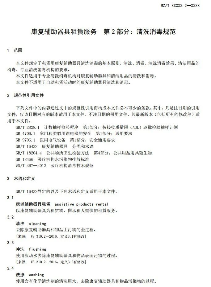 康復(fù)輔助器具租賃服務(wù) 第2部分:清洗消毒規(guī)范(征求意見稿)