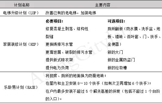 新加坡于1957年通過“中央公積金”福利制度,居家養(yǎng)老受到中央公積金的保障及全社會(huì)的共同參與。從1989年開始,針對條件不佳的市鎮(zhèn)提供“組屋更新計(jì)劃”。整個(gè)計(jì)劃歷時(shí)22年,約131000戶家庭受益。例如,電梯升級(jí)計(jì)劃(LUP) 旨在在可行的情況下實(shí)現(xiàn)每層樓的直達(dá)電梯,從而提高居民的便利性, 政府為提供新的電梯補(bǔ)貼大部分資金,同時(shí)積極引入私人投資。家居裝修計(jì)劃(HIP)包含必要項(xiàng)目、可選項(xiàng)目和適老項(xiàng)目(EASE)三項(xiàng)。必要項(xiàng)目為涉及居民生活安全衛(wèi)生的問題,參與計(jì)劃的居民必須接受改造,改造時(shí)會(huì)盡量減少給居民帶來的不便。可選項(xiàng)目和適老項(xiàng)目則根據(jù)個(gè)人需求,同一組屋內(nèi)75%的屋主同意,該計(jì)劃才會(huì)進(jìn)行。必要項(xiàng)目由政府資助,可選項(xiàng)目和適老項(xiàng)目則根據(jù)個(gè)人需求,申請人需承擔(dān)5%-12%的修繕費(fèi)用。