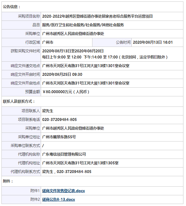 項目名稱:2020-2022年越秀區(qū)登峰街道辦事處居家養(yǎng)老綜合服務平臺運營項目