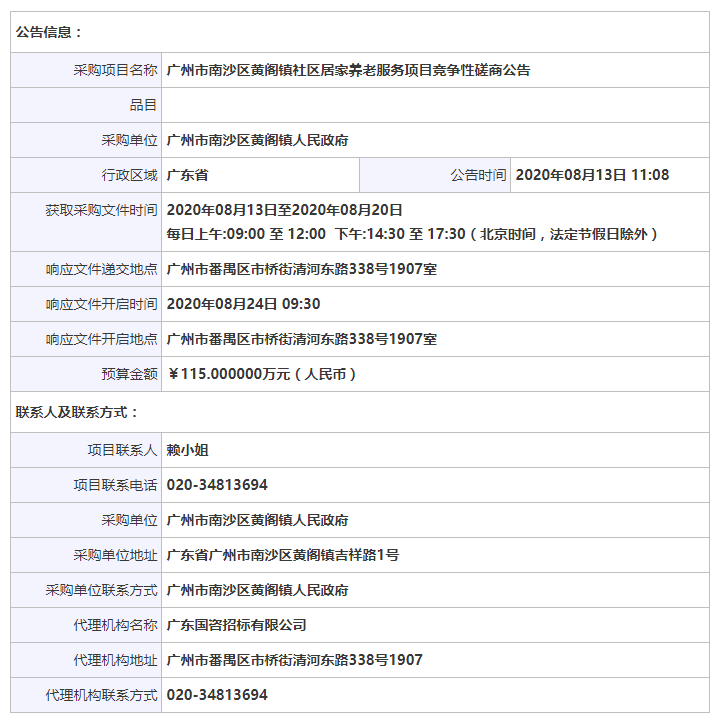 項目名稱:廣州市南沙區(qū)黃閣鎮(zhèn)社區(qū)居家養(yǎng)老服務項目競爭性磋商公告